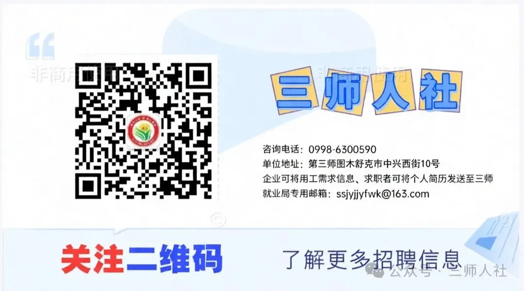 1.报名方式。采取线上邮箱或线下办公地点报名方式。报名人员在“三师就业”微信公众号和线下办公地点(图木舒克市昆神街2号图木舒克农业科技有限公司办公室1004室)进行报名,并附相关材料。