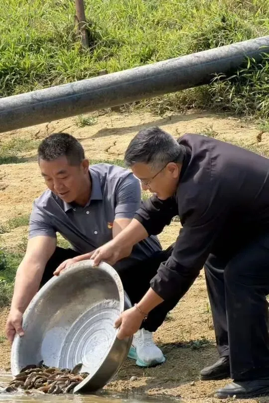 放苗仪式现场,祁文龙站长强调,鱼鳅高效混养是推动我州渔业绿色转型、助力乡村振兴的重要实践,州水产站将持续提供技术指导与资源保障,确保项目落地见效。