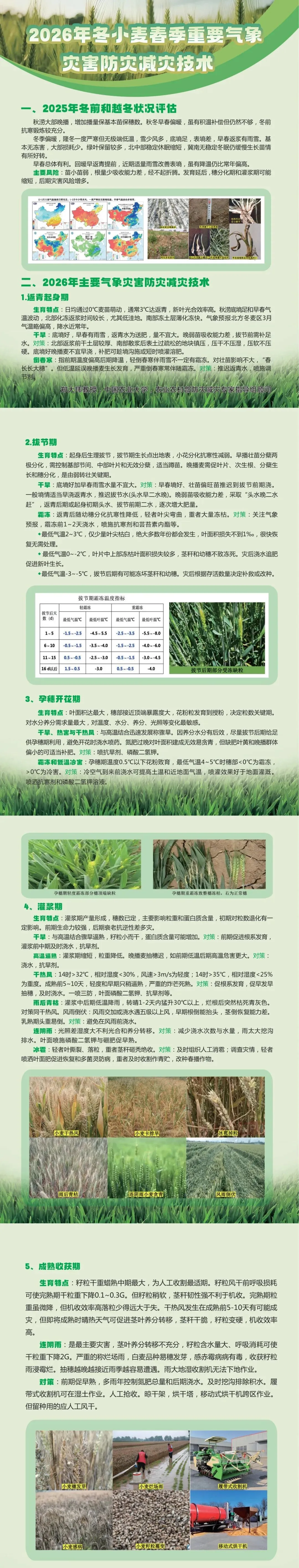 近日,河北省农业农村厅联合河北农业大学,在辛集市召开全省小麦春季管理培训会。为贯彻落实培训会有关要求,特发布2026年冬小麦春季重要气象灾害防灾减灾、病虫草害防控春季管理建议,供参考。