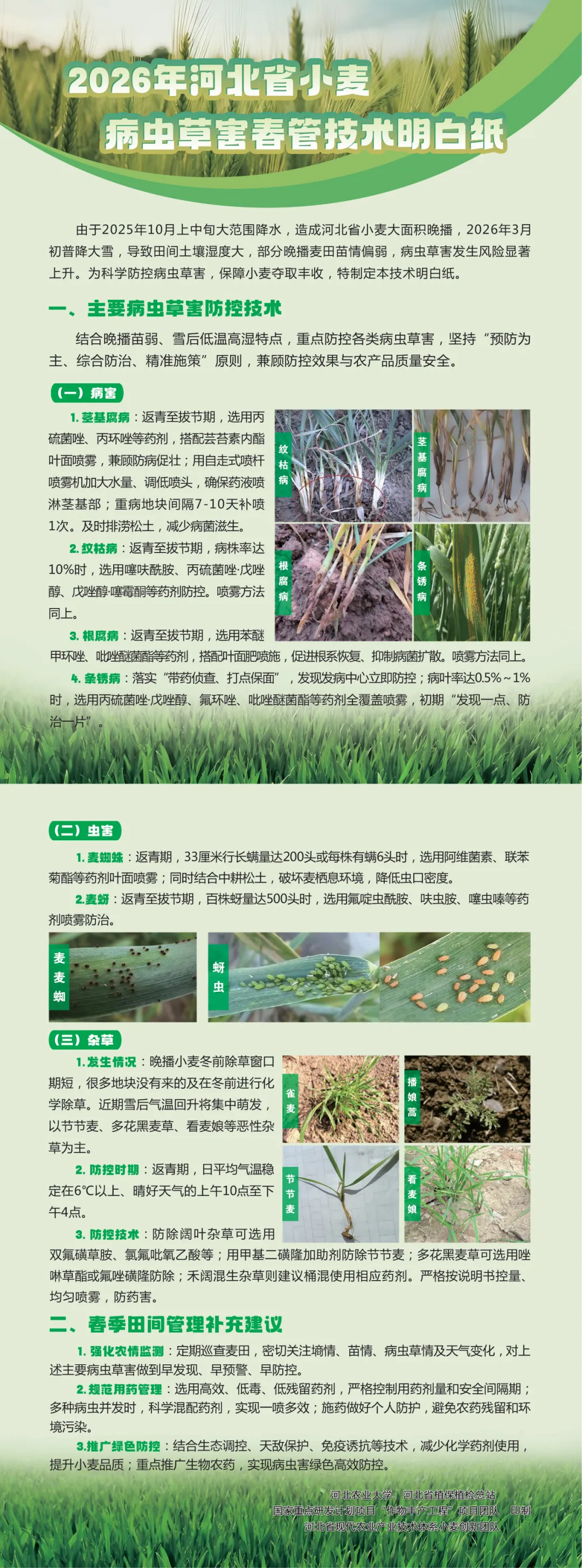 河北省农业农村厅联合河北农业大学发布2026年冬小麦春季管理建议