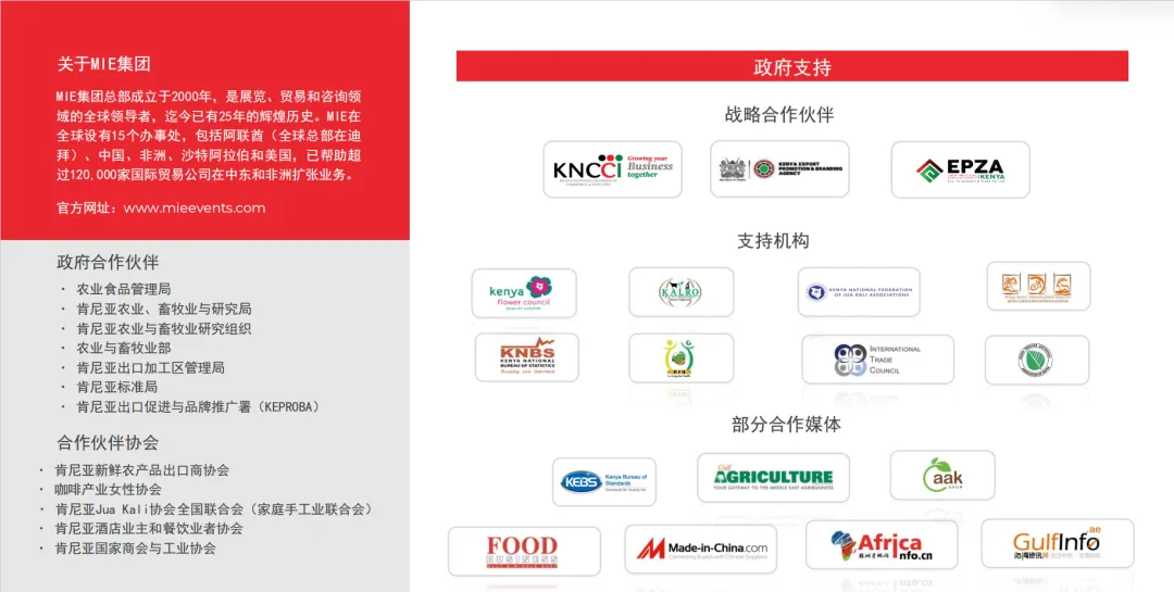 展会将吸引来自全球20个国家和地区,肯尼亚政府也对展会给予了高度重视和大力支持,通过展会促进肯尼亚食品及农业的现代化发展,加强与国际市场的对接,提升肯尼亚在全球食品及农业领域的地位,进一步推动非洲大陆的食品及农业合作与发展。