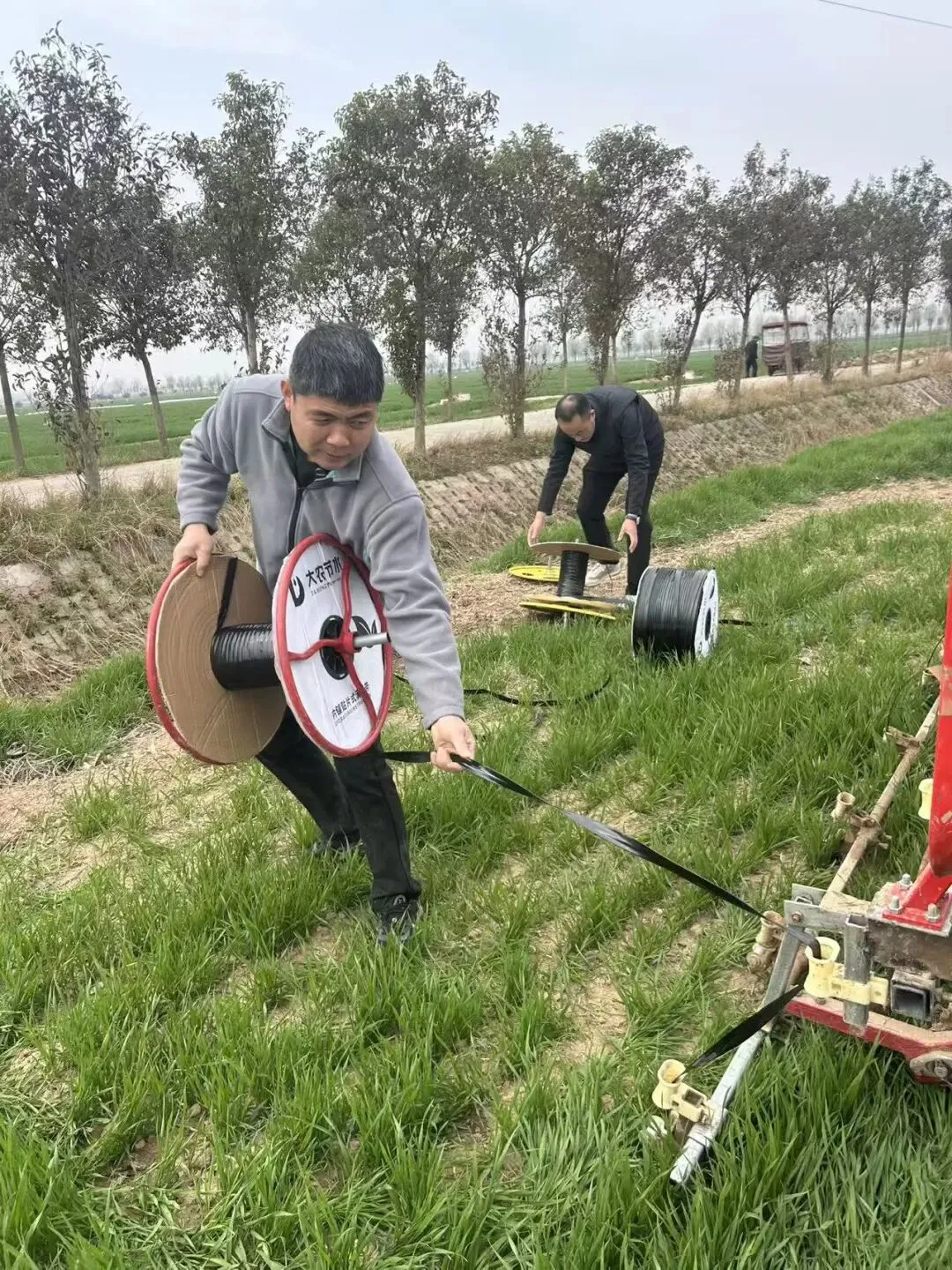 采用 “机械 + 人工” 双模式作业。大面积地块使用配套拖拉机的滴灌带铺设机,以≤3km/h 的匀速精准展开滴灌带,效率是人工的 5-10 倍;小面积地块则由经验丰富的技术人员人工铺设,确保滴孔朝上、无扭曲打结,每隔 3-5 米用土块或 U 型地钉固定,杜绝渗漏隐患。