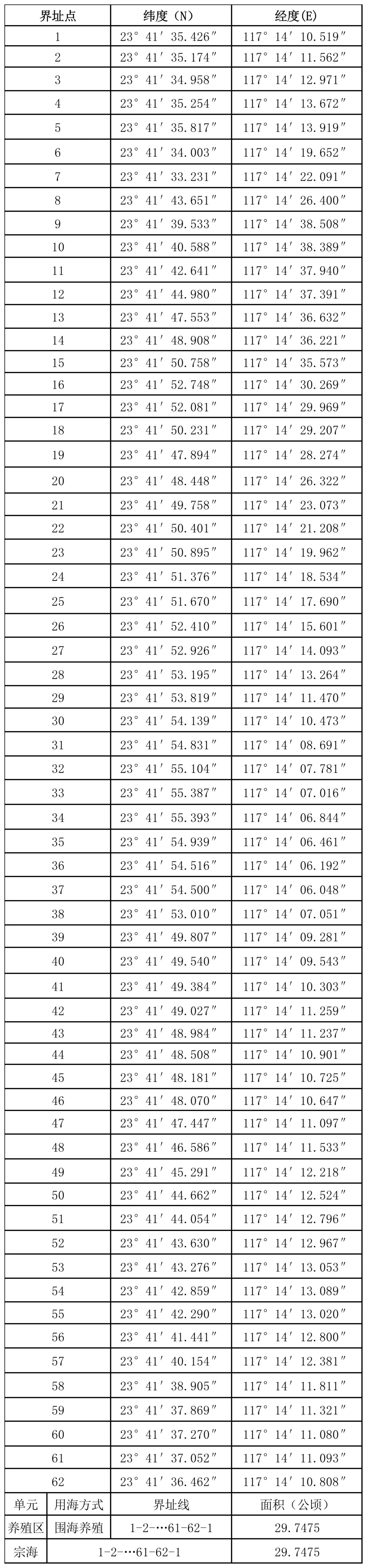 附件:诏安县西山农场现代渔业综合提升改造项目(一)宗海界址点表
