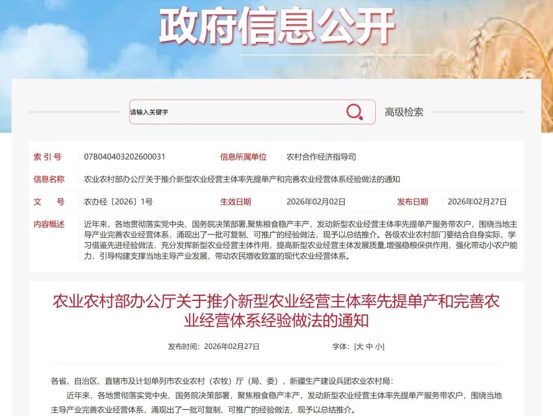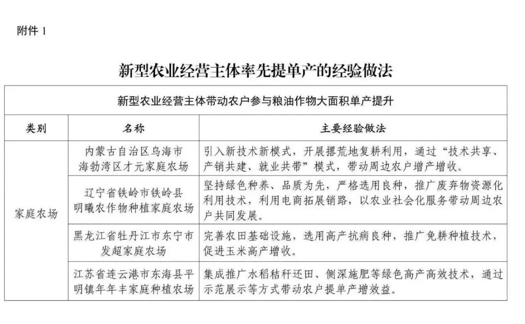 农业农村部办公厅关于推介新型农业经营主体率先提单产和完善农业经营体系经验做法的通知