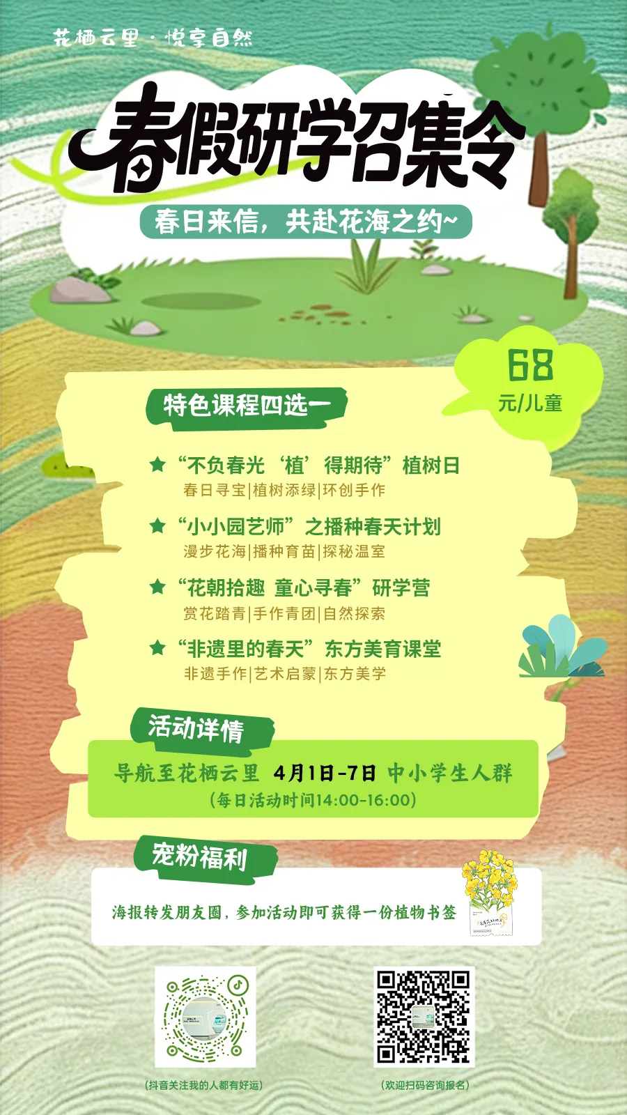 春假将至,万物复苏,花栖云里“悦享自然”系列研学春日焕新上线!四大主题课程融科普、趣味与成长于一体,邀孩子们共赴春天,开启奇妙旅程——