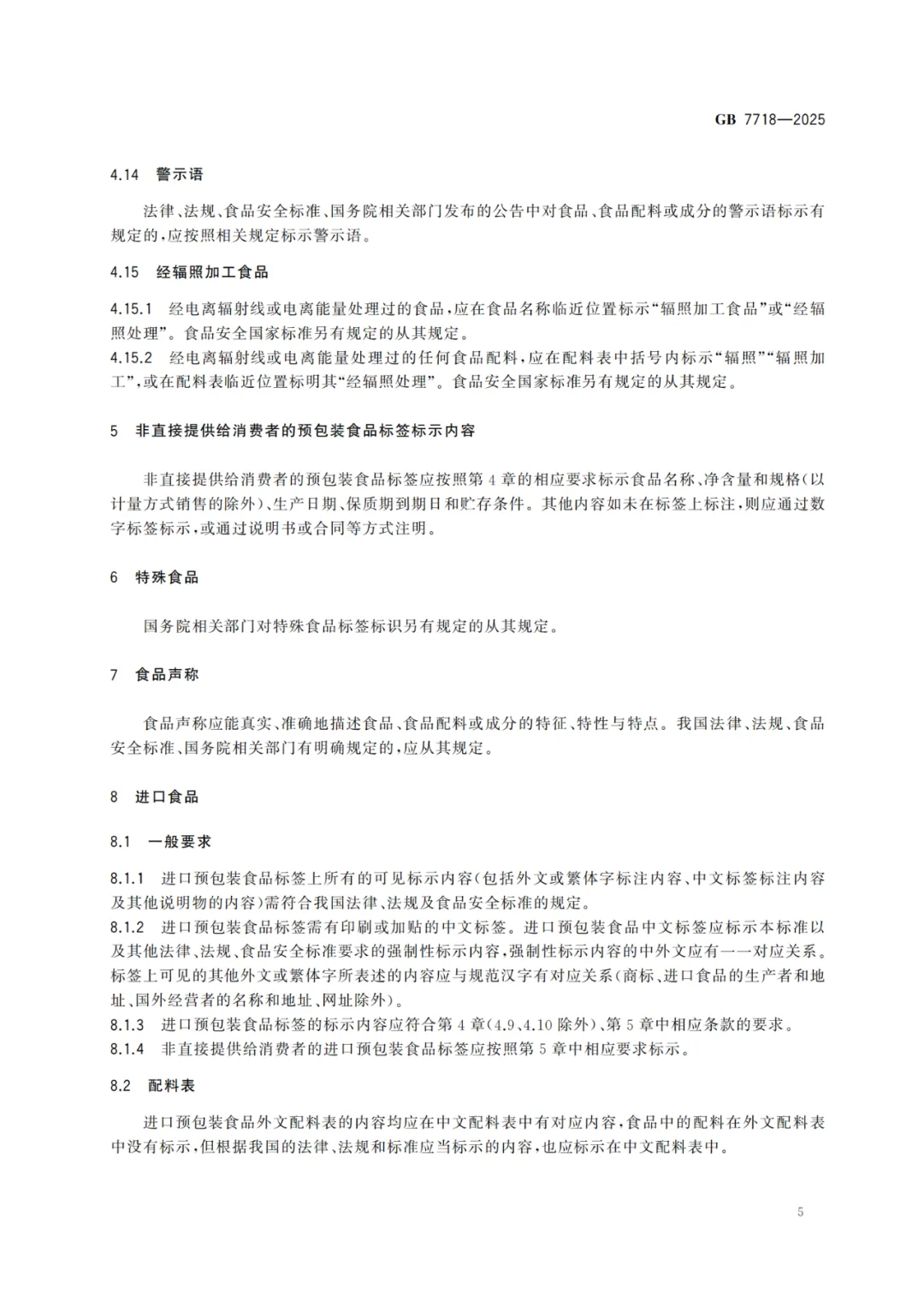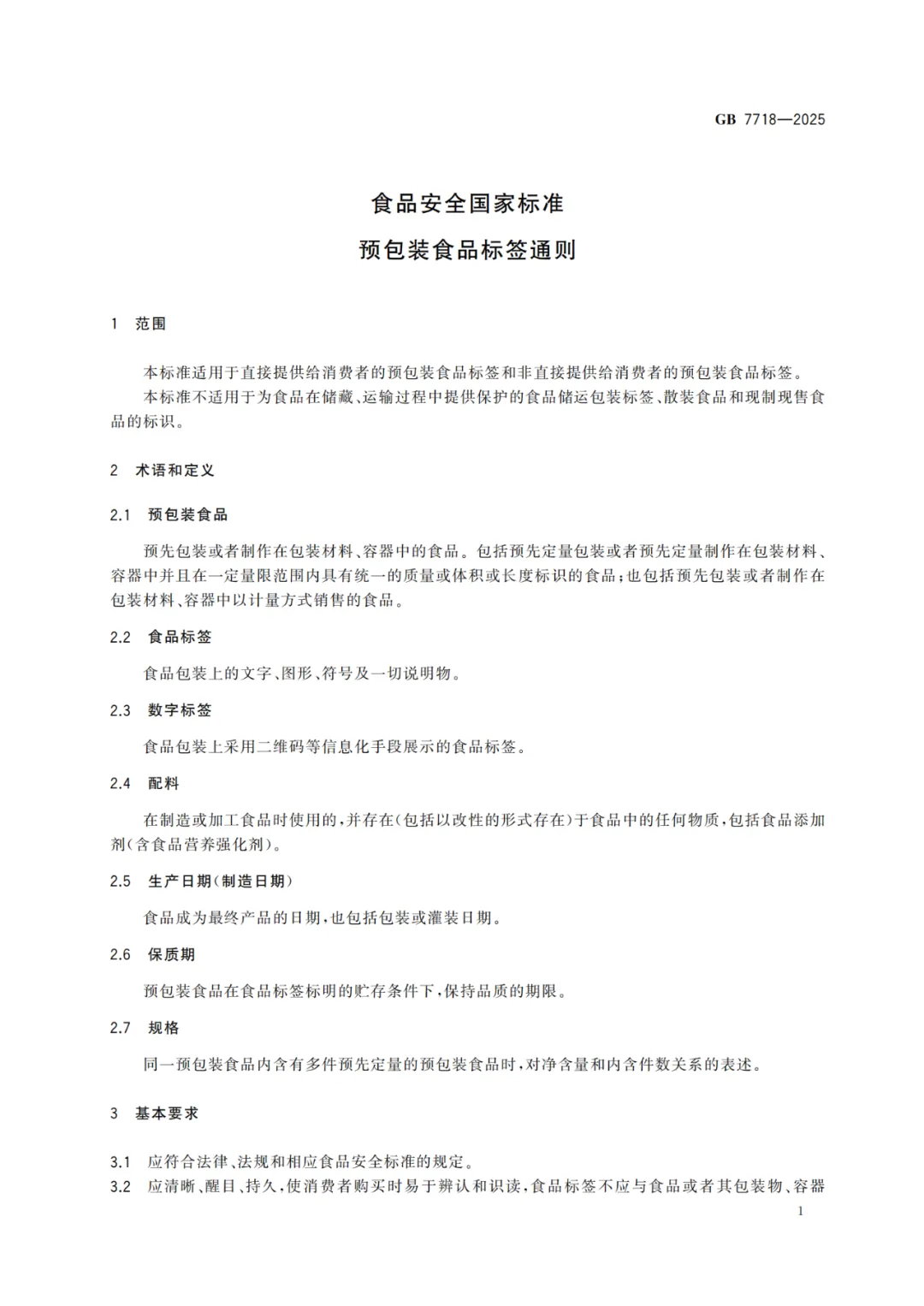 近日,国家卫生健康委、国家市场监督管理总局联合发布GB 7718-2025《预包装食品标签通则》与GB 28050-2025《预包装食品营养标签通则》两项食品安全国家标准,明确将于2027年3月16日正式实施,2025年3月至2027年3月为过渡期,过渡期内新旧标签产品可并行销售。