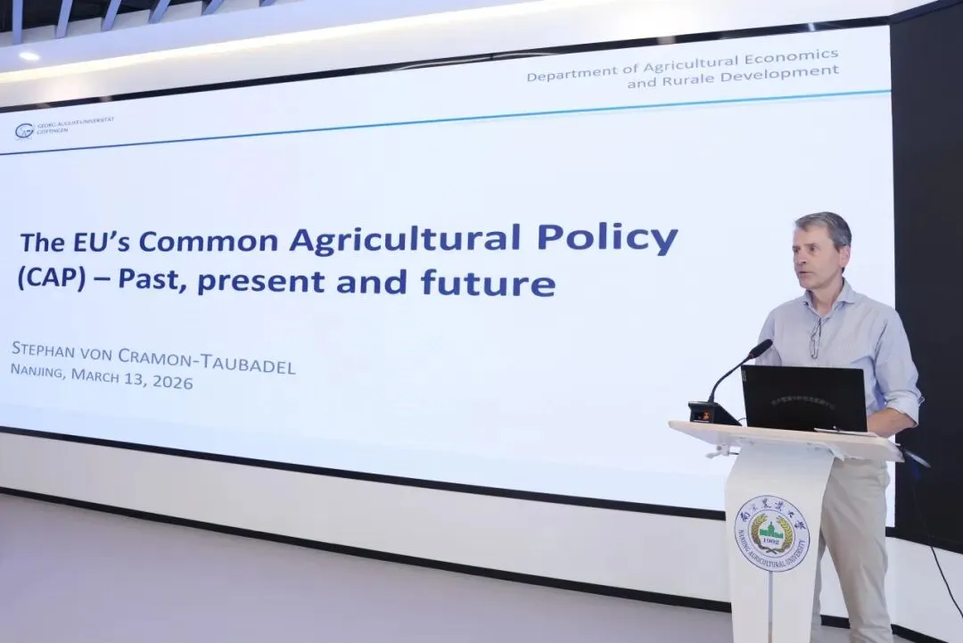 2026年3月13日下午,“全球农业转型与粮食安全:政策、技术与可持续性”国际研讨会在南京农业大学第三实验楼一楼103演示厅顺利举行。本次会议汇聚了国内外农业经济、政策与技术领域的知名学者,共同探讨在全球人口增长、气候变化背景下,农业可持续发展的路径与挑战。