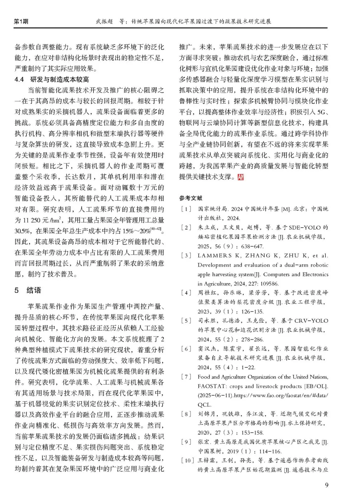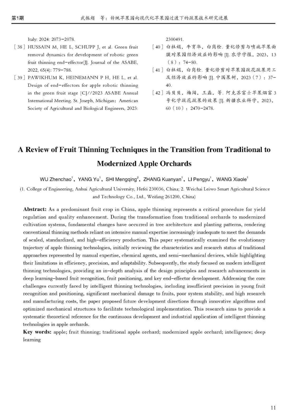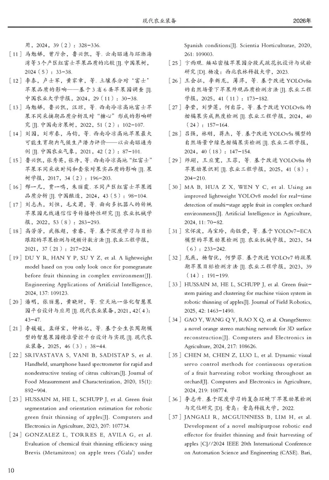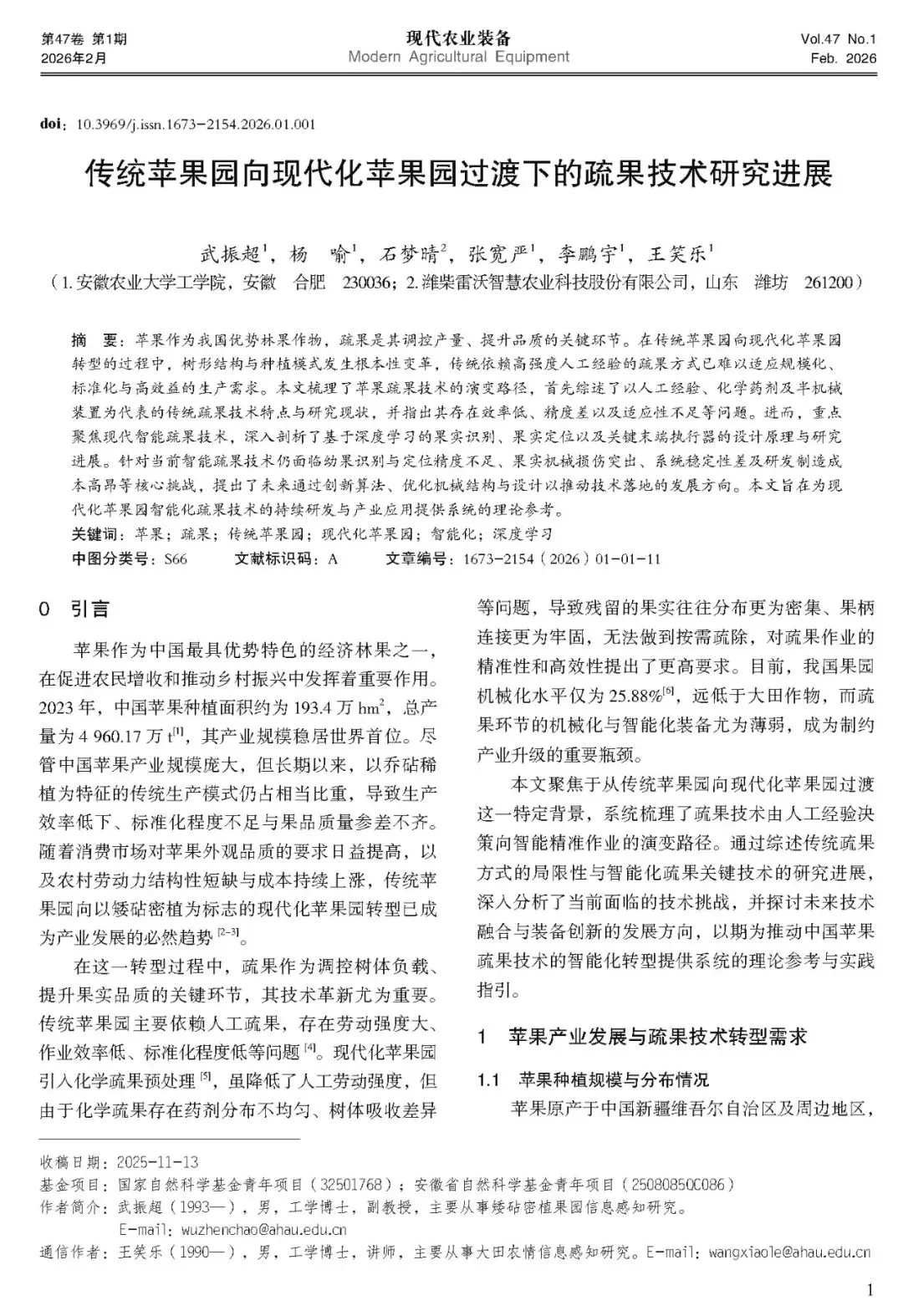 [1]武振超,杨喻,石梦晴,等.传统苹果园向现代化苹果园过渡下的疏果技术研究进展[J].现代农业装备,2026,47(01):1-11.