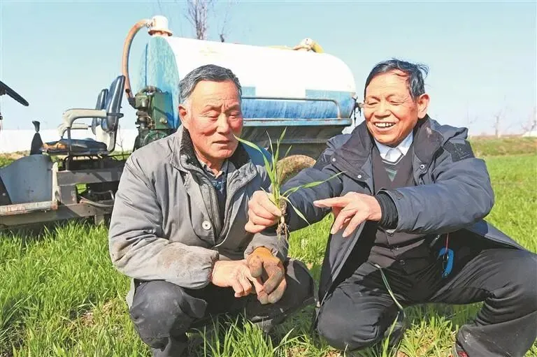 3月13日,在位于铜山区棠张镇棠张村的有机种植示范园里,员工利用双干式太阳能沼气池生产的氮磷钾俱全、速效迟效兼备,富含17种氨基酸和多种作物生长调节素的沼气肥给麦田施肥。这是市农业农村局“银发生辉”专家组正在指导徐州市环能生态技术有限公司在棠张村开展沼肥闭环有机种植技术的示范推广。