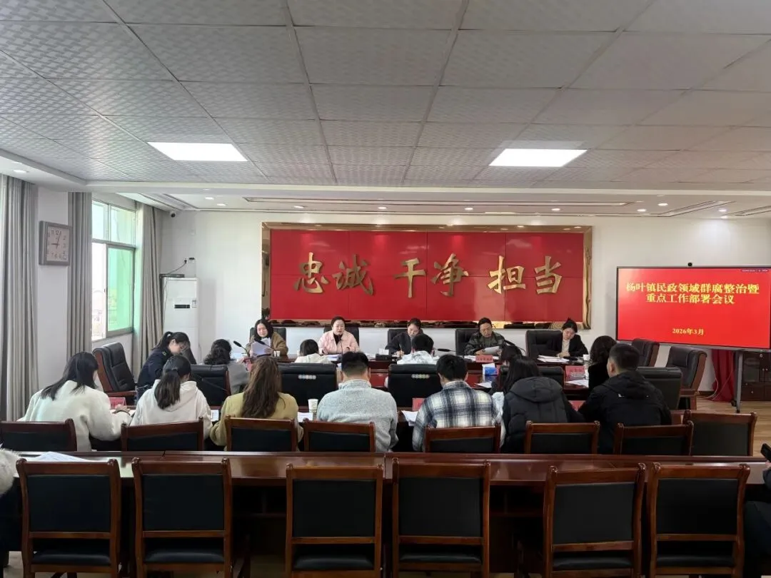 为深入推进群众身边不正之风和腐败问题集中整治,维护群众切身利益,近日杨叶镇召开2026年农业农村、民政领域群腐整治工作会议,相关工作分管领导对惠民资金监管、村级“三资”管理等重点工作进行部署。