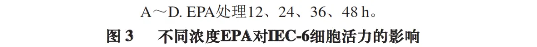 首先,本研究明确DHA和EPA对IEC-6细胞增殖的促进作用具有浓度和时间依赖性。DHA在100 μmol/L浓度下处理12 h和24 h可显著提高IEC-6细胞活力,而延长处理时间至36 h和48 h后,该效应减弱甚至出现抑制趋势。类似地,EPA在10 μmol/L浓度下处理12 h和24 h也可显著促进IEC-6细胞增殖,更长时间处理则未观察到显著促增值效应。这一结果与既往研究一致,表明ω-3 PUFAs的生物学效应强烈依赖于作用浓度和时间。短时处理可能通过调节细胞膜流动性及信号转导促进增殖,而长时间暴露可能导致代谢适应甚至氧化应激,从而减弱增殖效果。高浓度或持续处理还可能诱发凋亡等负面反应。因此,在实际应用中需严格控制剂量与处理时间,以优化ω-3 PUFAs的促增殖效果并避免潜在不良反应。