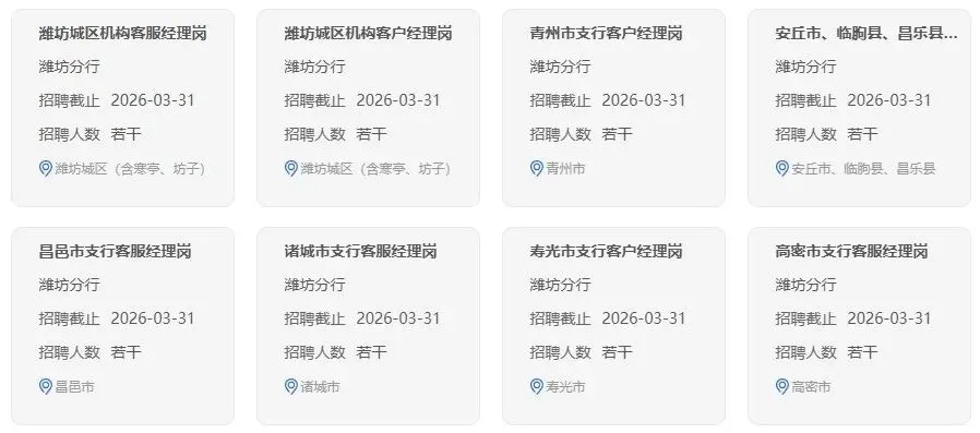 各岗位的工作职责、应聘条件和具体要求见中国农业银行招聘网站(https://career.abchina.com.cn)岗位详情。