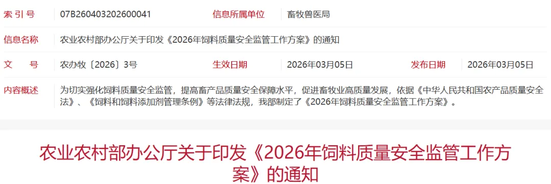 2026年饲料质量安全监管工作方案