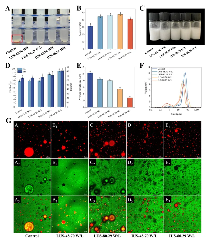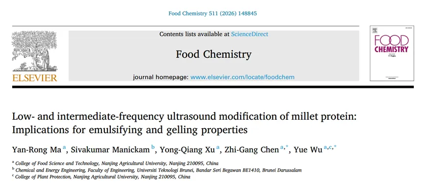 Food Chemistry | 南京农业大学食品科学技术学院吴越副教授、陈志刚教授团队:小米蛋白的低频和中频超声改性:对乳化和胶凝特性的影响