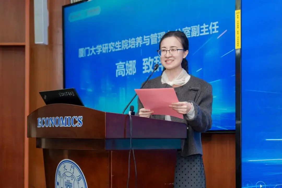 高娜在致辞中从整体上介绍了本届大赛的参赛情况,对中国农业银行厦门市分行的大力支持和指导表示感谢,对各参赛队伍的作品质量和展现的精神面貌表示肯定。她指出,大赛参赛选题涵盖了人工智能、区块链、大数据、云计算等多个方向,在金融领域的创新应用上具有深远意义和广泛潜力。比赛期间,校院企三方精诚合作,牢牢把握住了正确的育人方向,瞄准了国家战略需求和产业发展需求,进一步推动产教研融合创新,在人才培养、项目培育上取得了显著成效,期待未来延续校企合作办赛形式,不断培育优秀项目。