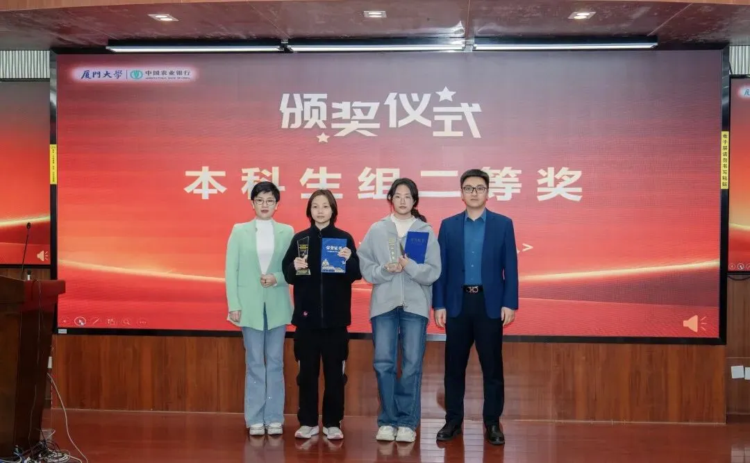 经过“农行杯”第四届厦门大学金融科技创新大赛选拔,2025年12月,我校共有6支队伍进入全国总决赛,其中3支队伍获得全国一等奖、3支队伍获得全国三等奖,厦门大学获评优秀组织单位,朱周帆、张庆昭、钟威、郭晔老师获评优秀指导教师。