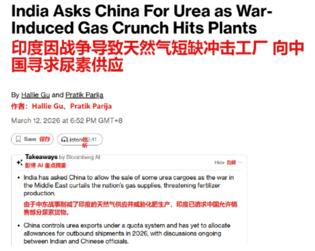 因为伊朗是尿素生产大国,尿素又是以煤炭和天然气为原料生产。