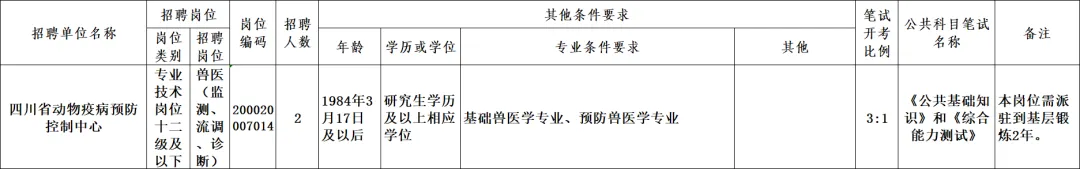 【四川】四川省农业农村厅直属事业单位招聘兽医、畜牧硕士