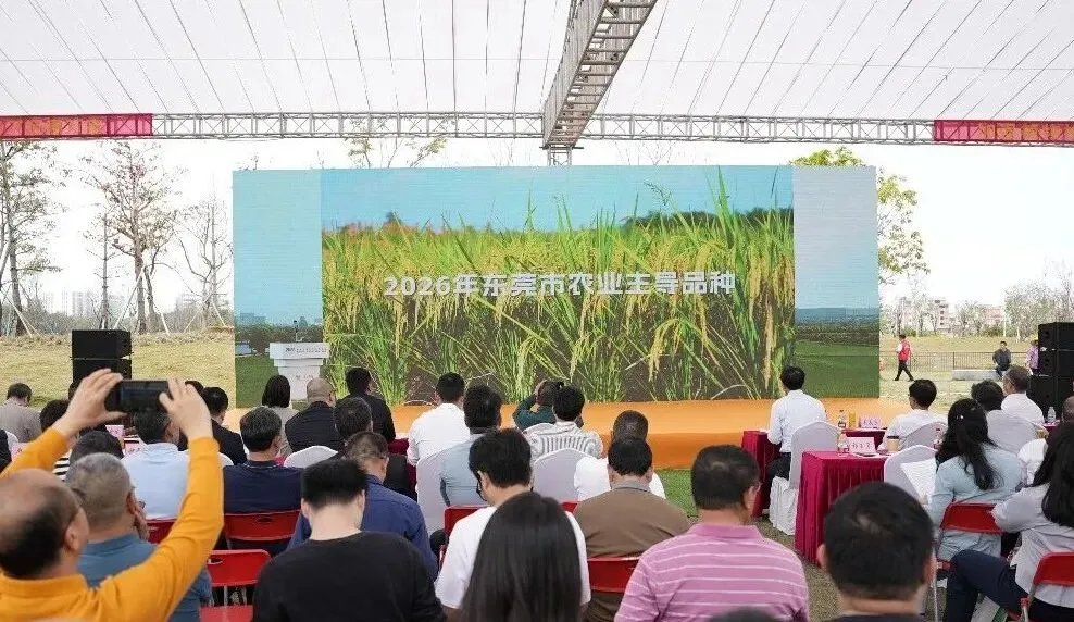 3月17日上午,2026年东莞市春耕生产现场会暨农业科技、农业保险支农服务下乡活动在洪梅镇金色水乡稻田公园举行。会议深入学习贯彻2026年中央一号文件、中央和省委农村工作会议以及全省春耕现场会精神,部署全年农业生产重点工作。