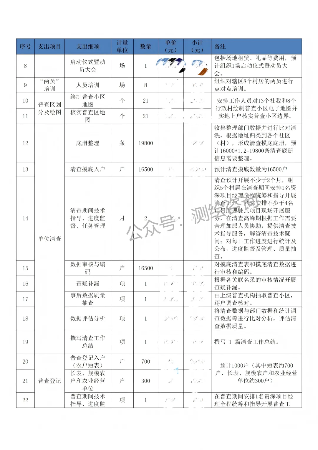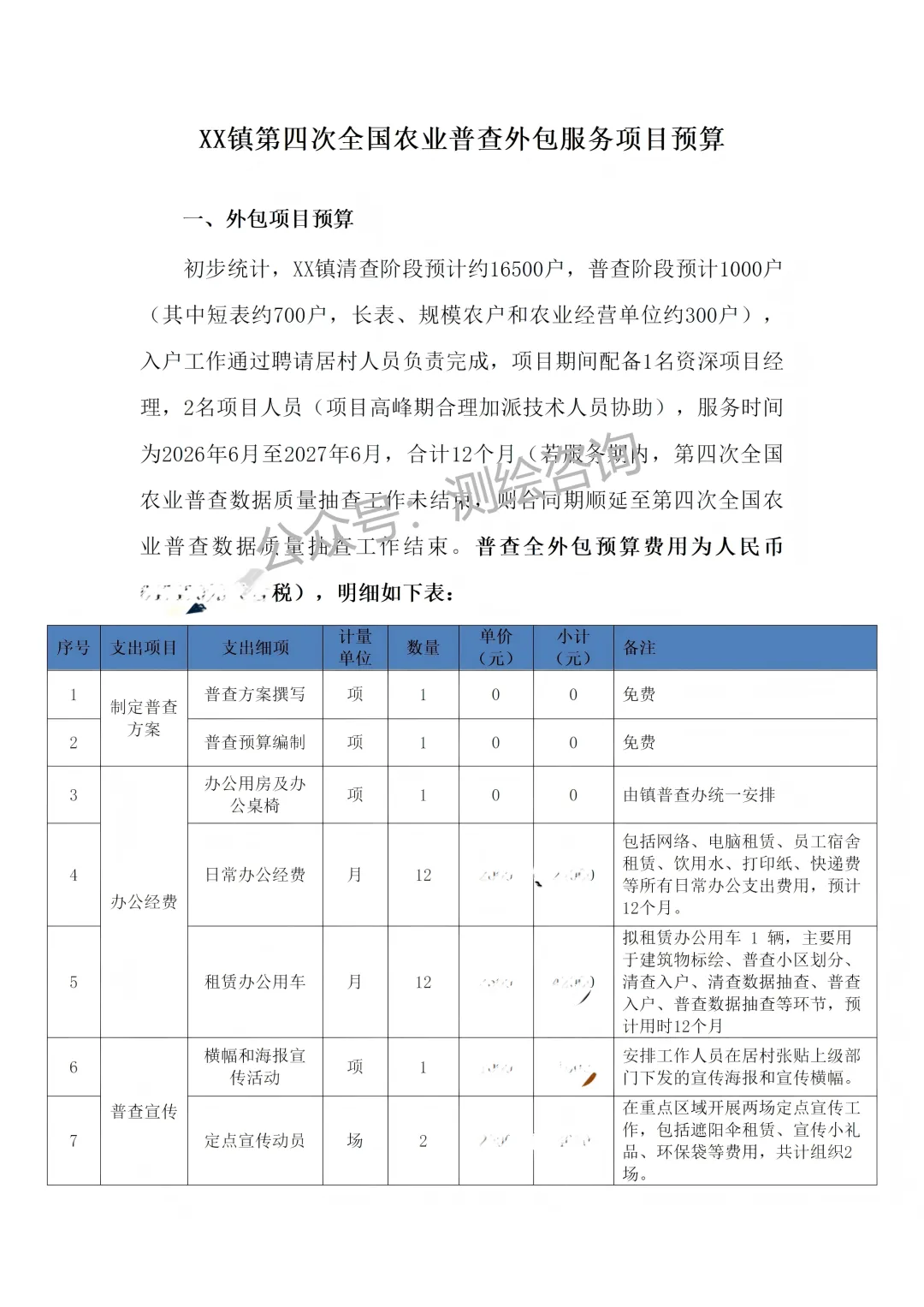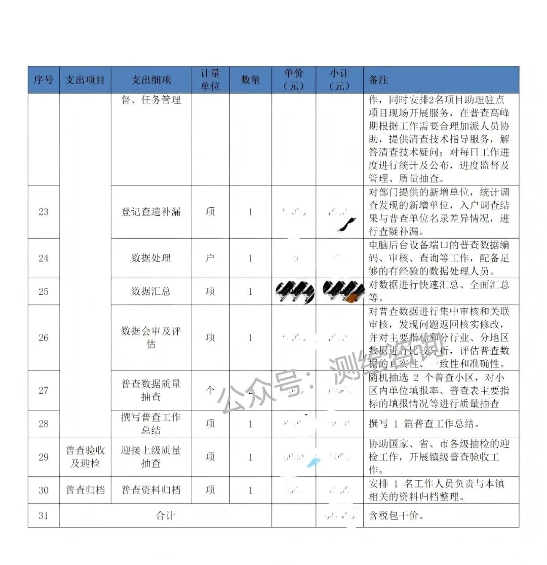 式:关注测绘咨询公众号,后台回复“第四次全国农业普查外包服务项目预算表