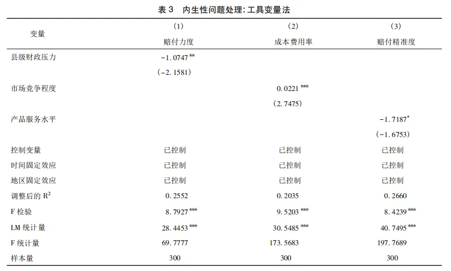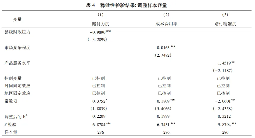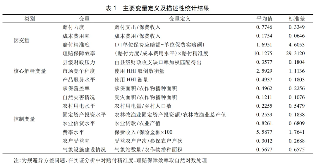 1.县级财政压力引发保险机构压低赔付行为。2007—2023年中国农业保险保费财政预算平均增速为21.9%①,与同期农业保险增长趋势基本一致,呈现保费规模高度依赖财政补贴的“硬拉型增长”特征。然而,伴随经济增速换挡与结构性减税政策推进,财政自给率显著下滑(吕冰洋等,2024),叠加农业保险“扩面、增品、提标”的刚性需求,所需财政补贴资金持续攀升,补贴资金需求与财政支付能力缺口不断扩大。公共选择理论认为,在财政紧平衡现状下,地方政府财政资源分配会偏好于高政治经济回报领域(田雅群等,2023),而农业保险财政补贴属于各级财政非生产性公共服务支出范畴(熊志刚等,2018),其拨付优先级易被下调,可能出现保费补贴挤占甚至挪用。然而,农业保险赔付上限在理论上取决于保险理赔阶段可供支配的资金量(陆宇等,2023),财政补贴作为农险理赔资金池的重要组成部分,其无法足额到位可能导致保险机构最终在成本收益考量下产生压低赔付行为。具体来看,一方面,在保费补贴自上而下的逐级拨付机制下,县级政府财政压力上升使得补贴资金截留挪用问题凸显,应收保费问题严峻,保险公司产生现金流不确定的悲观预期,可能为降低赔付波动性、保证利润率与综合偿付能力而违背损失补偿原则,产生理赔配给、协议赔付等市场扭曲行为,压低赔付金额以实现农业保险业务短期的盈亏平衡;另一方面,当行政干预介入政策性农业保险费率厘定时,在财政压力驱动下,相关部门可能产生通过干预来间接缓解资金配套压力的倾向,压缩了保险机构的合理利润空间,进而使其可能通过拒赔、惜赔等非精算手段转嫁赔付成本、压缩实际赔付。由此,农户获赔未达预期,农业保险保障效率损失,农业保险市场陷入补贴驱动型的弱态均衡状态,阻碍其高质量发展转型,因此,本文提出如下研究假说: