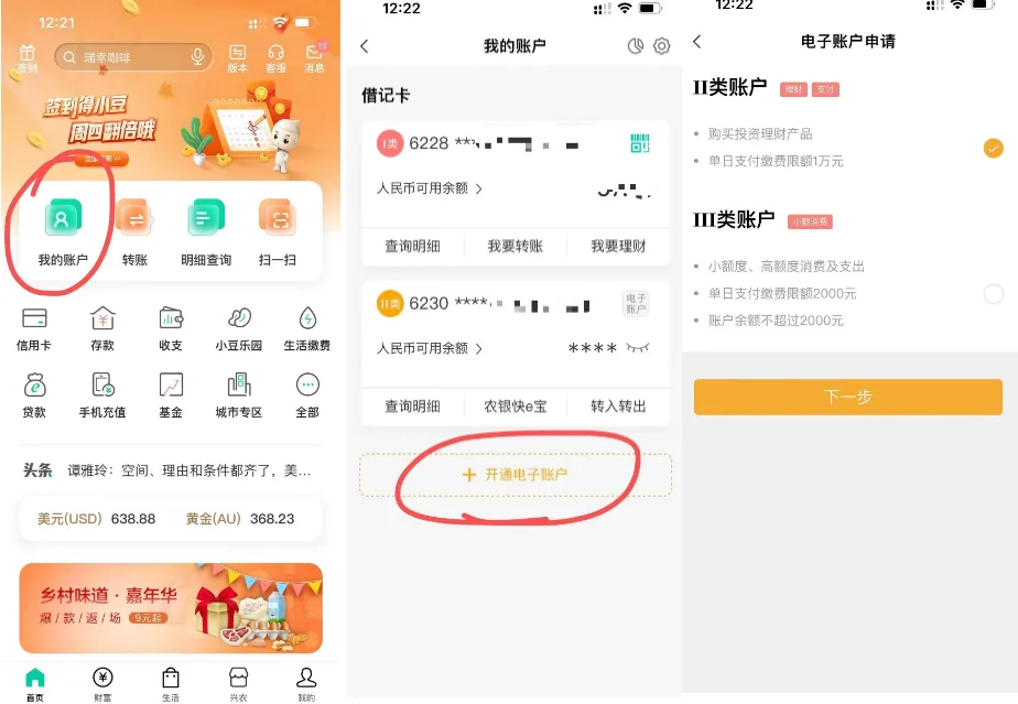 1. 登录APP并进入开户入口:打开农行APP,在首页找到“我的账户”选项并点击进入。在“我的账户”页面中,能看到“开通电子账户”的功能按钮,点击它。