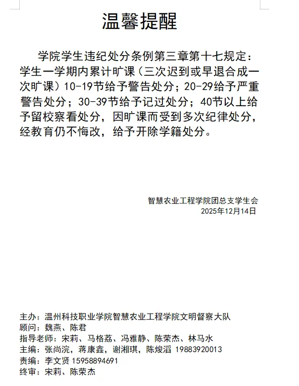 >清新学风 | 智慧农业工程学院第二周学情周报