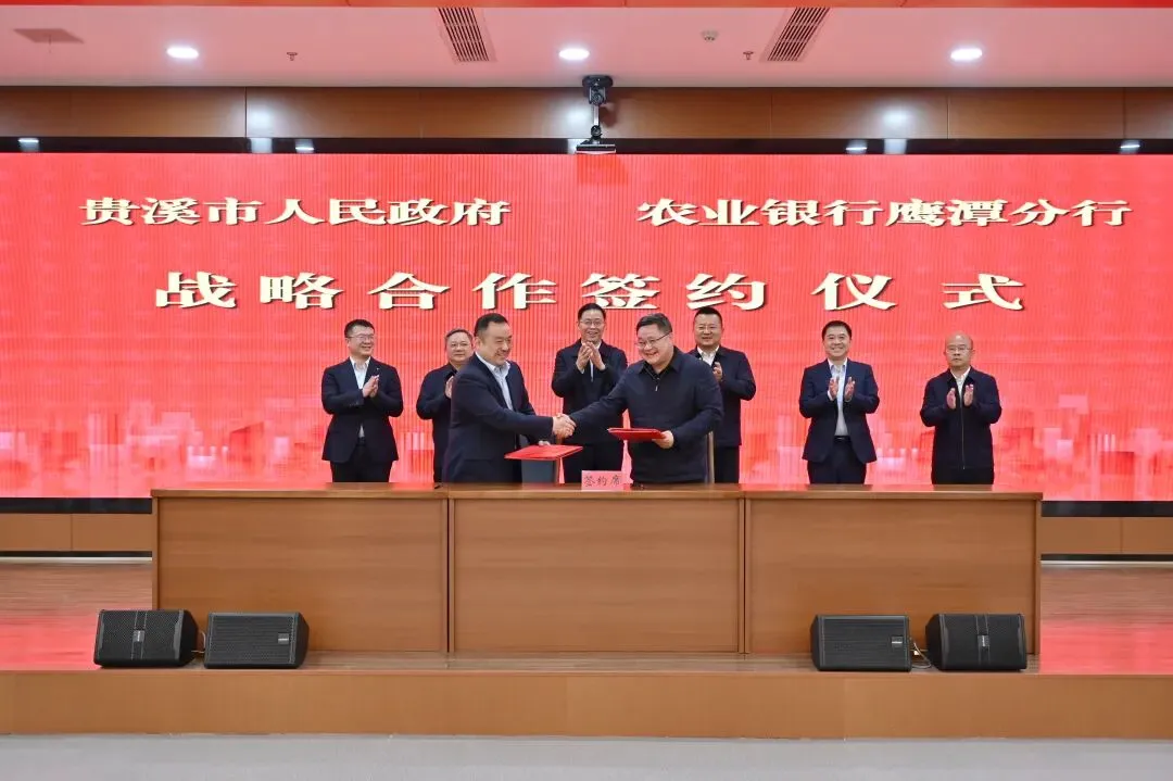 随后,农业银行鹰潭分行签约代表张剑华与贵溪市人民政府签约代表张相生签署了战略合作协议,标志着政银合作迈向了崭新篇章。