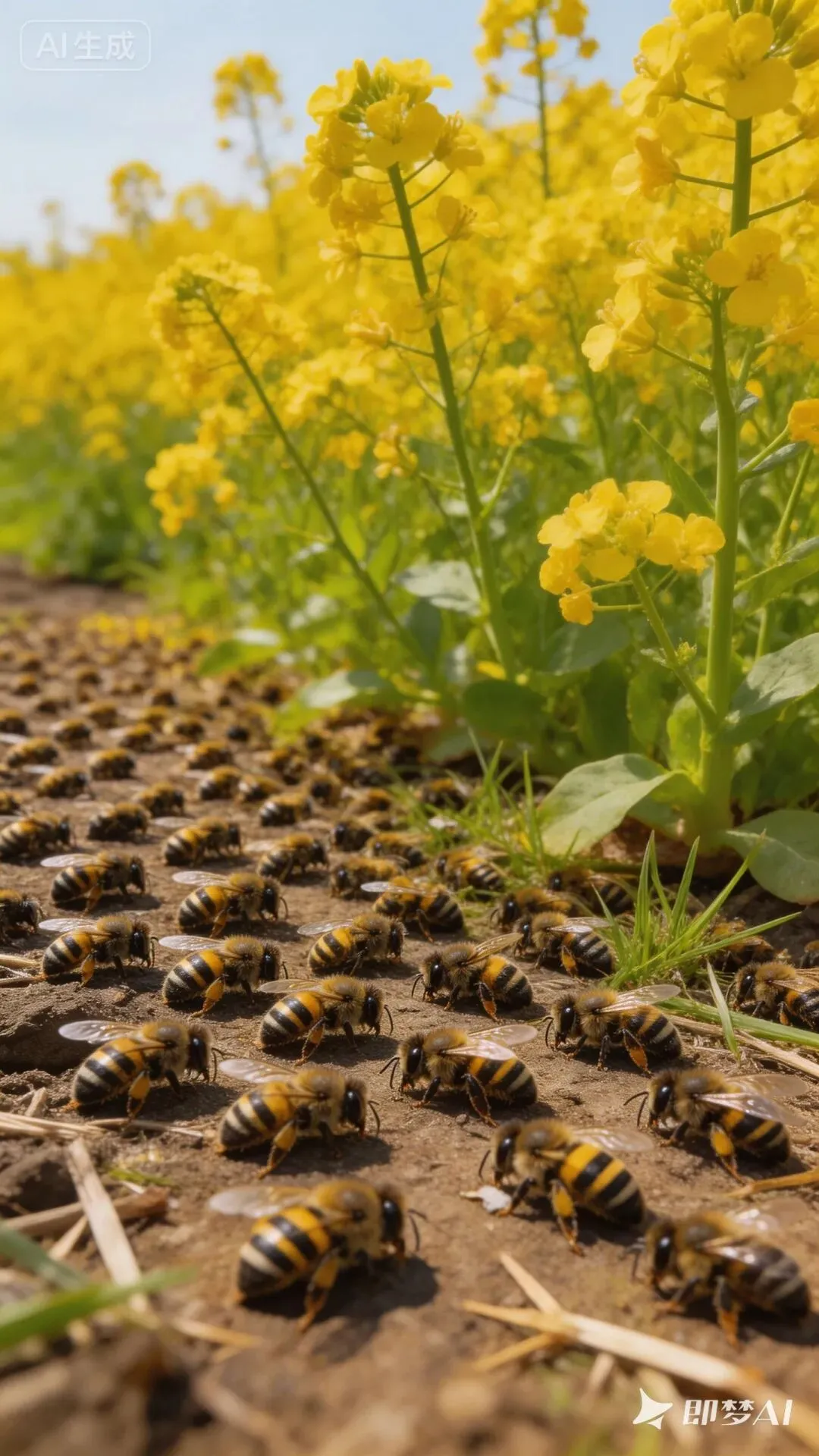 2023年春,某平原地区的数万亩油菜花田迎来"无人机统防统治"。农管部门招标的植保公司,驾驶着满载农药的无人机,在花海上空来回穿梭,白色药雾如暴雨般倾泻而下。农民们起初还觉得"高科技就是好,省时省力",可三天后,田埂上便堆满了蜜蜂尸体——黑压压的蜂群从花间坠落,有的腿上还沾着花粉,有的腹部鼓胀破裂,空气中弥漫着刺鼻的农药味。