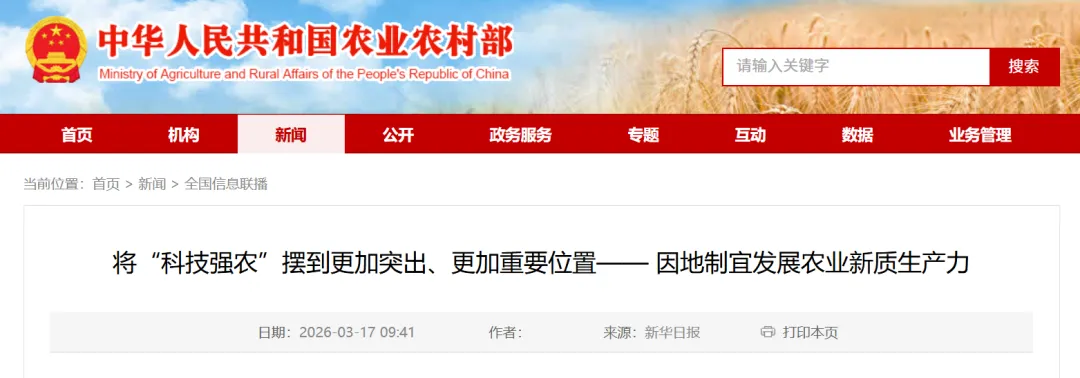 日前,江苏省政府专题召开科技强农推进会,聚焦生物农业、智慧农业、海洋科技三大领域,正式推出18条科技强农政策举措。
