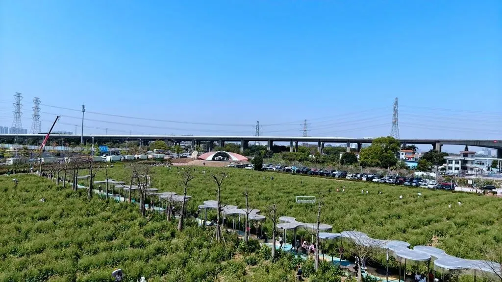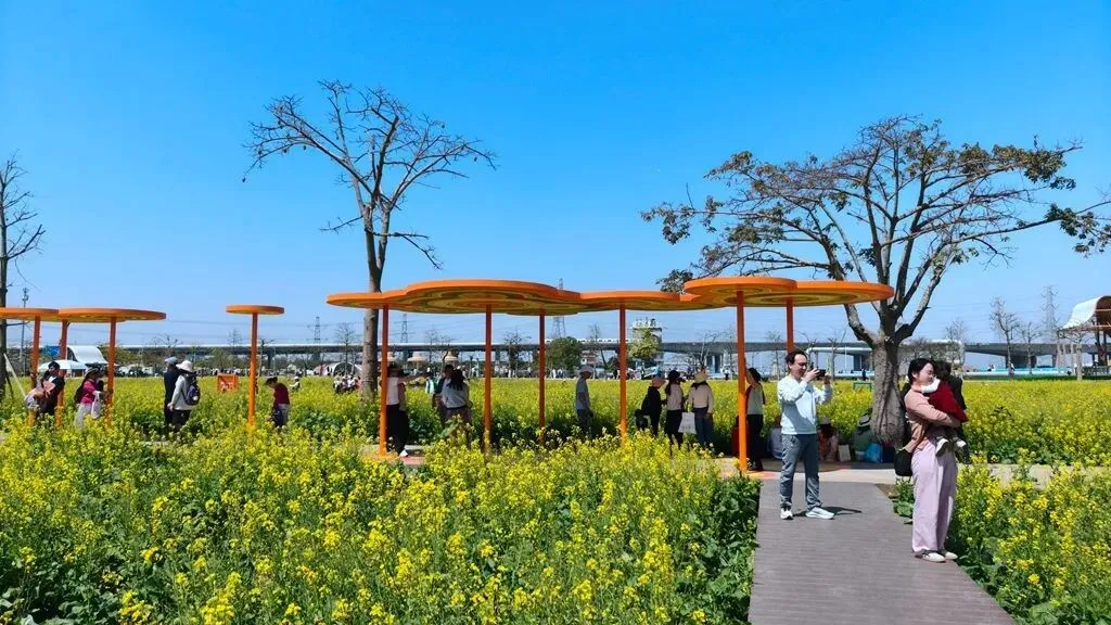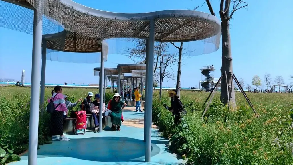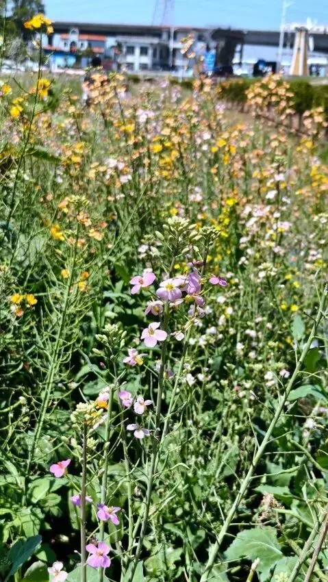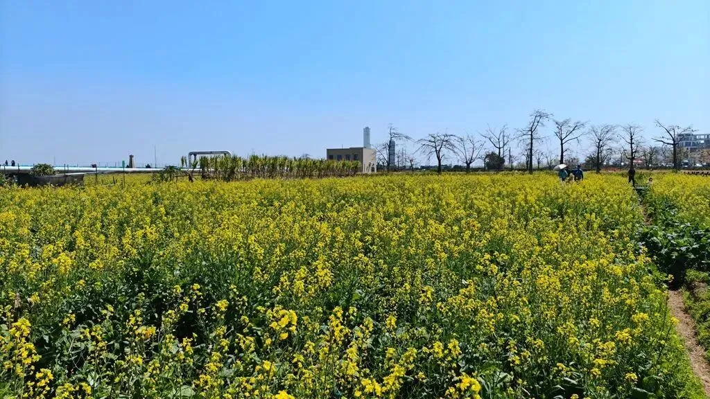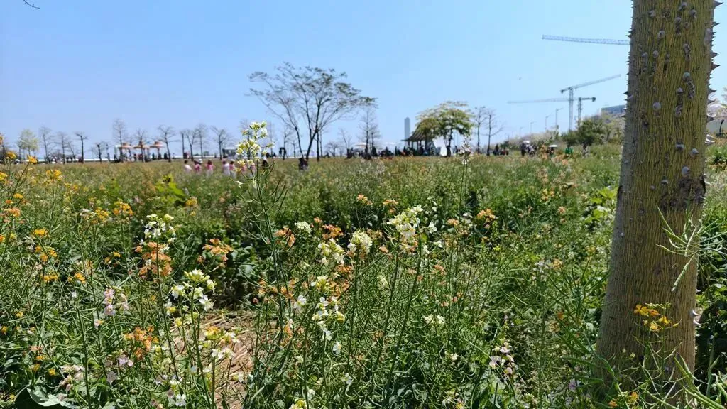 | 周六的天气实在太好啦,阳光明媚,轻风徐来,我和队友地铁来到位于广州南沙的东涌官坦农业公园,我是从同事的朋友圈里多次看到过这里的七彩油菜花田,如今得以一睹芳容很是雀跃,说实在话,我是第一次知道油菜花还可以有七彩颜色的,白的,橙的,粉紫的,黄的,粉红的,间或还有向日葵衬托一下,虽然我们确实是来晚了,花期有点过了,有相当部分都已结籽,但并不影响周边四处飞舞采花的蜜蜂蝴蝶和周末蜂拥而来的游客;另一边田里是纯黄色油菜花就还刚好盛况,登上少女塔远眺南沙大桥和观龙岛,门口的东涌之眼和海堤路的彩绘氛围感拉满,旁边在建的香港科技大学(广州)二期规模甚是壮观。 回程正好遇上来回东涌地铁口接送的电瓶车,多口问了一下执勤的工作人员价格,得知是免费的,坐上车再咨询,果然是政府办的农业公园,果然是大手笔。 |