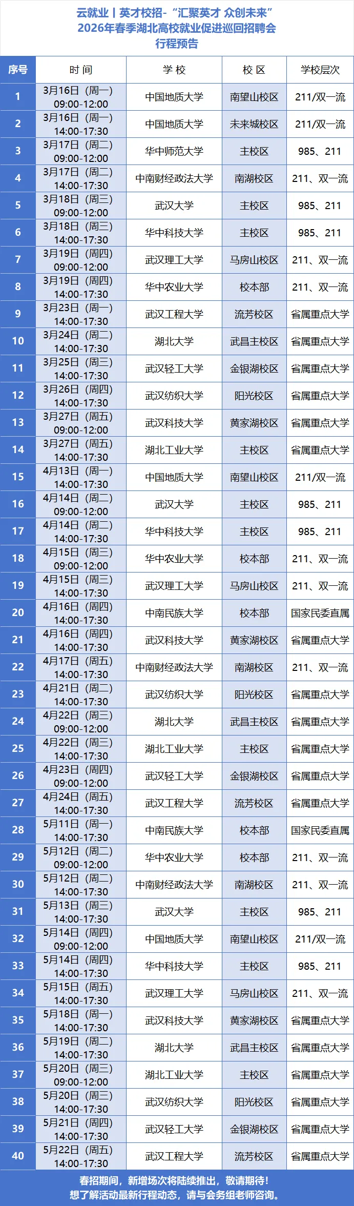 3月18日武汉大学|2026湖北高校巡回招聘会