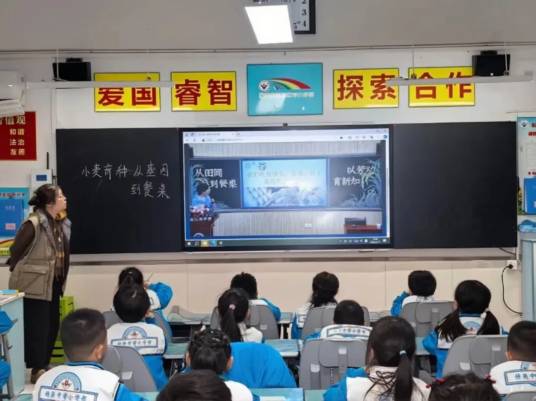 课堂上,韩博士从馒头、花卷、包子的烟火日常切入,带领孩子们解锁小麦的奇妙成长图鉴。回望远古岁月,普通小麦并非天然存在,它源自野生先祖,历经千万年的自然杂交与岁月淬炼,完成重生蜕变,才最终走上我们每日的餐桌。从基因解码到田间育种从科研攻关到端上万家餐桌,小麦的每一次迭代,都凝聚着育种创新的智慧,更流淌着科学家勇于创新、不懈奋斗的精神血脉。