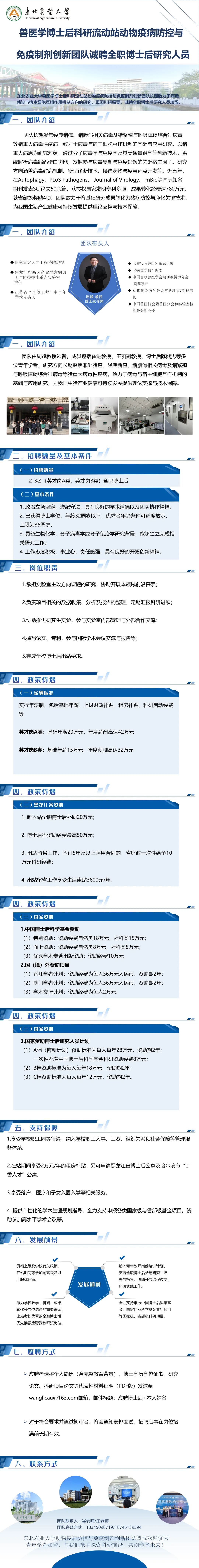 >第七期:东北农业大学兽医学博士后科研流动站动物疫病防控与免疫制剂创新团队诚聘全职博士后研究人员