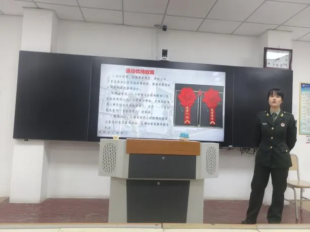 会上,本院的退伍军人身着整齐服装,精神饱满地登台分享。他们以亲身经历讲述军营故事,从初入军营的艰苦训练、执行任务的紧张时刻,到与战友的深厚情谊、个人的成长蜕变,让同学们对军旅生活有了直观认识。同时,他们也强调了军队对塑造坚韧意志、严谨作风和强烈责任感的重要作用。