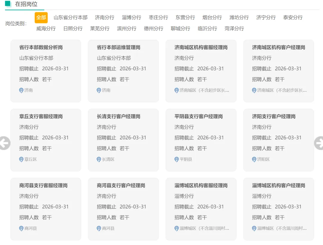 中国农业银行山东省分行是中国农业银行所辖一级分行。自1955年成立以来,历经专业银行、国有商业银行、国有控股大型上市银行等不同历史时期,逐步成为城乡覆盖广泛、业务门类齐全、金融科技领先、经营业绩优良、企业文化厚重、社会信誉卓越的大型金融机构。近年来,中国农业银行山东省分行坚持以习近平新时代中国特色社会主义思想为指导,践行金融工作的政治性、人民性,坚定不移走中国特色金融发展之路,着力打造服务乡村振兴领军银行、服务实体经济主力银行、服务百姓民生口碑银行,先后荣获“全国金融五一劳动奖状”“中国服务县域经济十佳银行”“企业文化建设优秀单位”“山东省政府金融创新奖”“省级文明单位”“山东省银行机构服务实体经济突出贡献奖”等荣誉称号。一、招聘需求(271人)