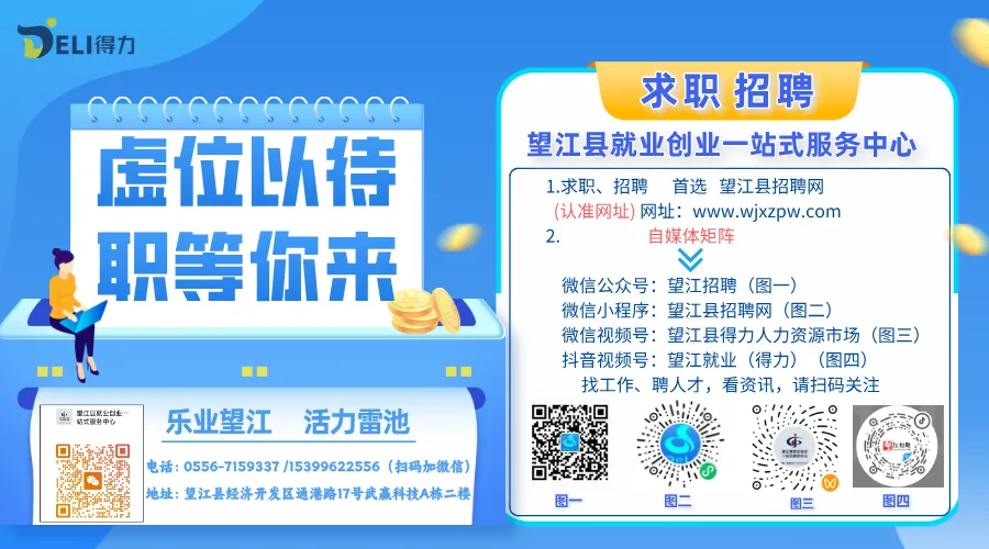 望江县招聘网:www.wjxzpw.com(请认准网址)