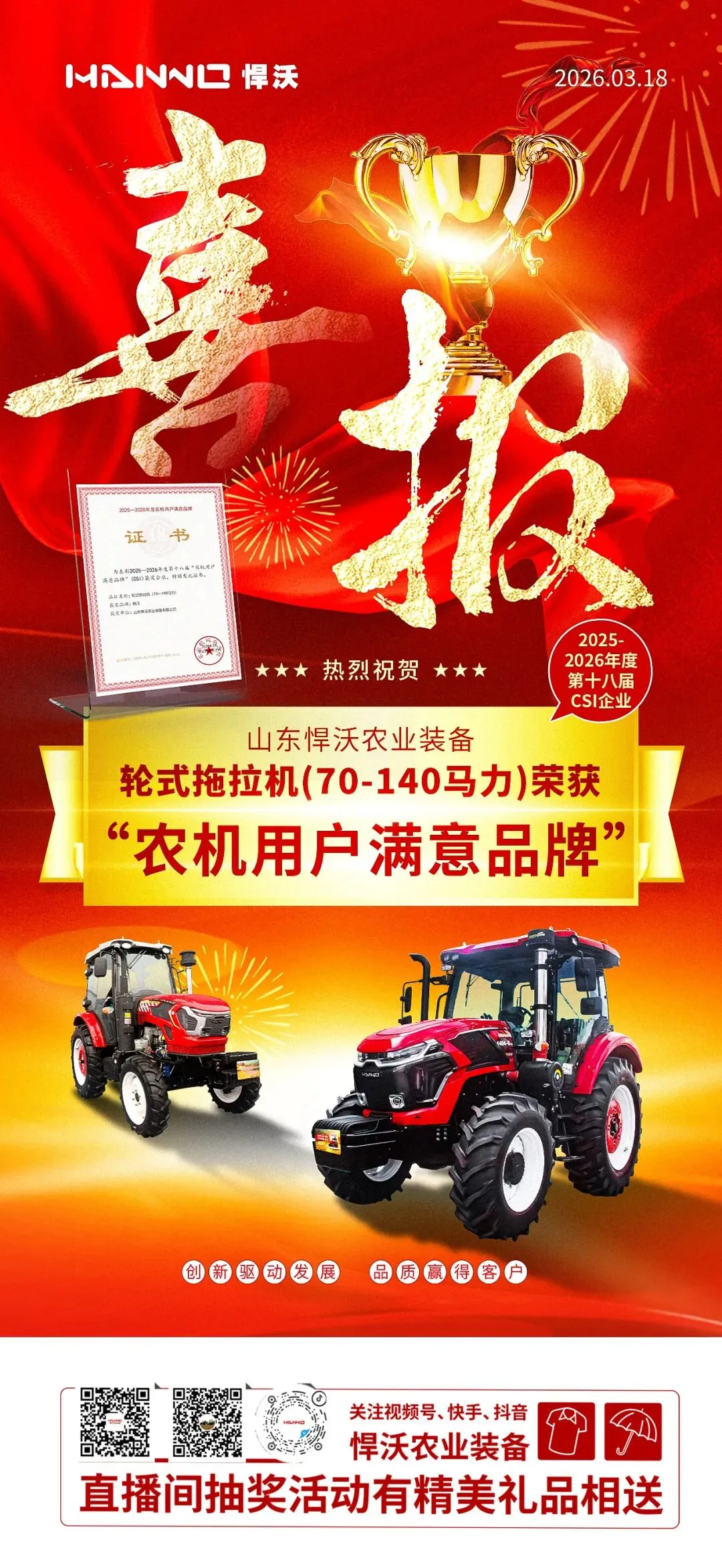 >【喜报】悍沃农业装备 荣获2025-2026年度第十八届“农机用户满意品牌”