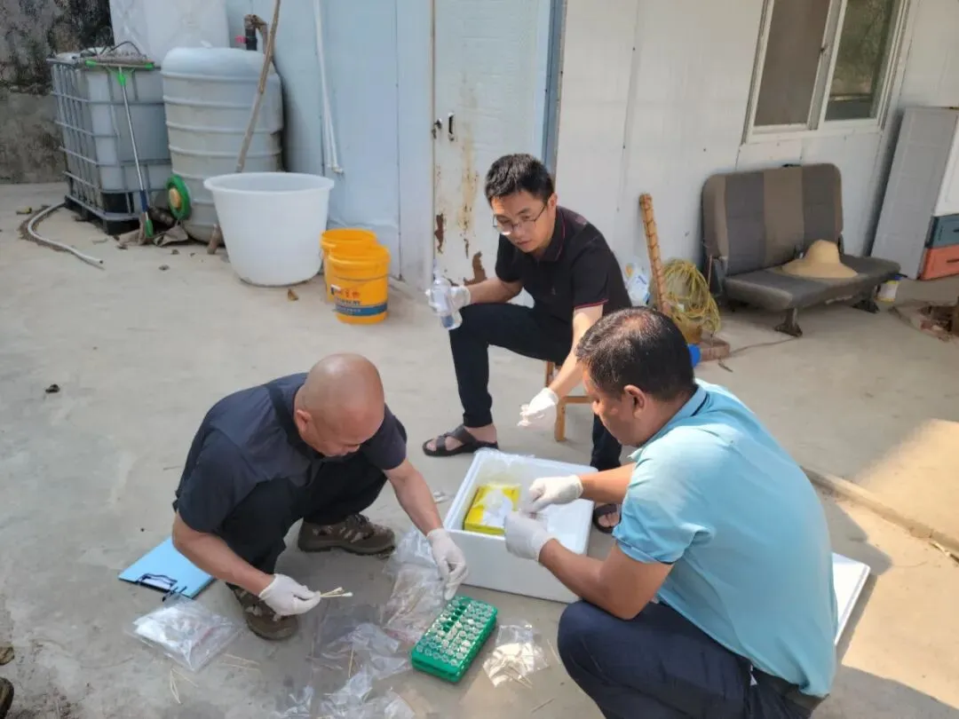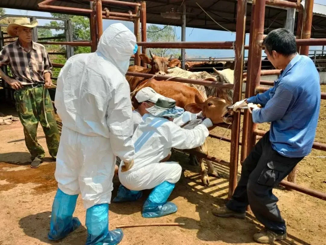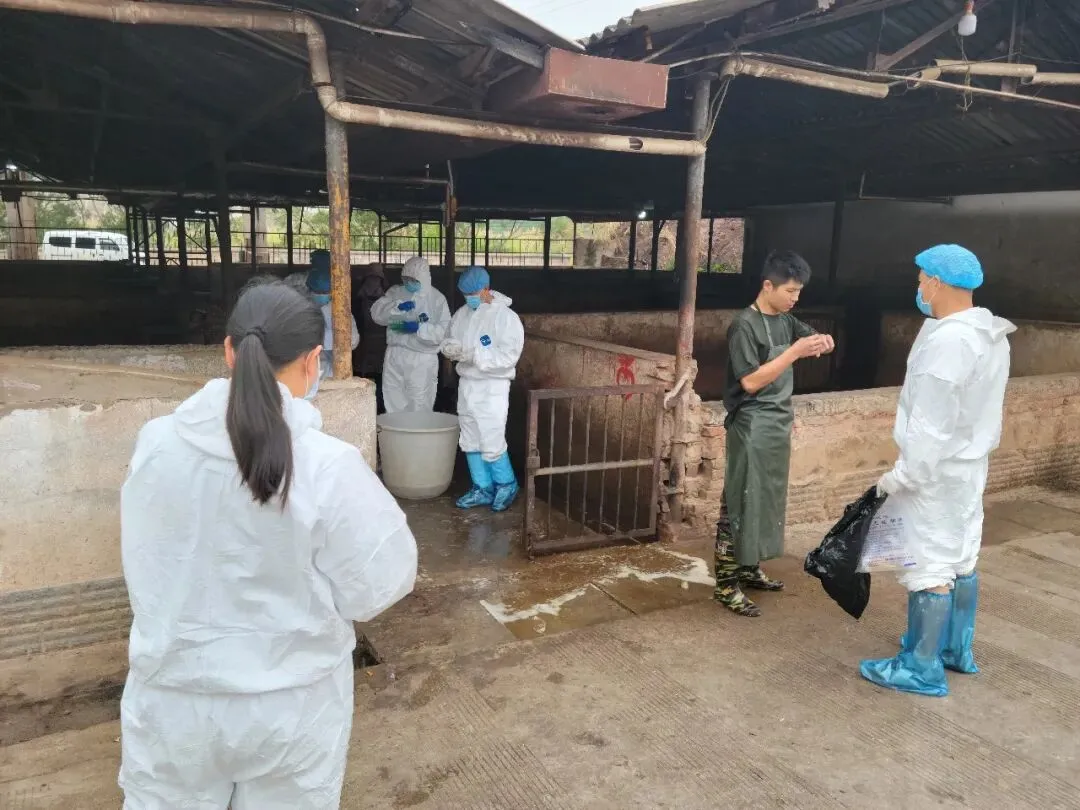 ◆到曼昔坝丰农养殖场进行疫病监测采样。
