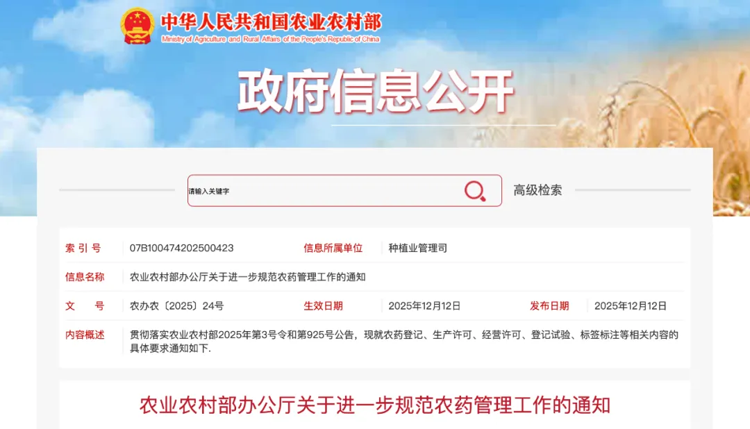 贯彻落实农业农村部2025年第3号令和第925号公告,现就农药登记、生产许可、经营许可、登记试验、标签标注等相关内容的具体要求通知如下。