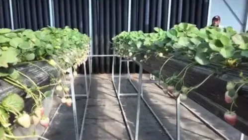 园区采用了智能调温、高架栽培、有机肥种植、蜜蜂授粉等一系列绿色生产模式。智能调温系统能够根据草莓生长的不同阶段,精准调节棚内温度,为草莓提供最适宜的生长环境;高架栽培技术有效减少了病害的发生,提高了草莓的品质和产量;有机肥种植和蜜蜂自然授粉,从种植源头保障了果品的绿色安全,让草莓口感清甜,品质上乘。