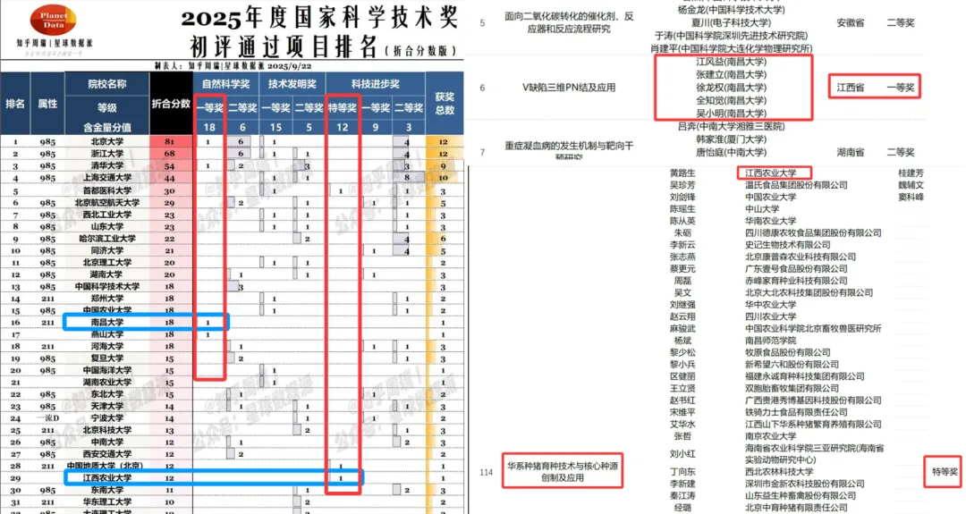 与江西农业大学同频共振的是,南昌大学江风益院士团队牵头的“V缺陷三维PN结及应用”项目也通过了国家自然科学奖一等奖初评。江西两所高校在2025年度国家三大奖初评中同时斩获最高等级奖项,彻底改变了江西高教在国家顶级科技奖项榜上“小透明”的局面,展现了江西在半导体发光与生猪种业两大关键领域的原始创新爆发力。