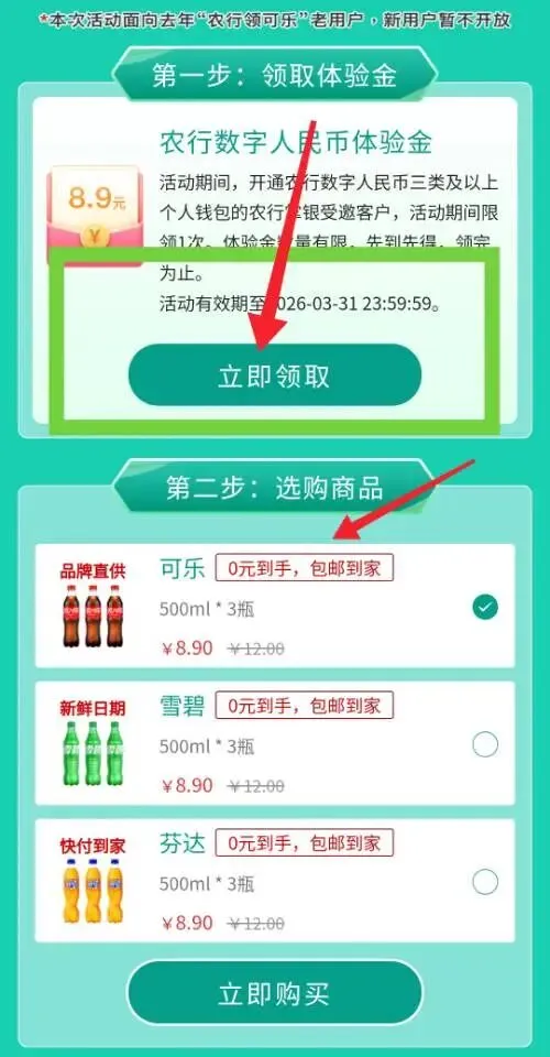 1. 先领取8.9元农行数字人民币体验金