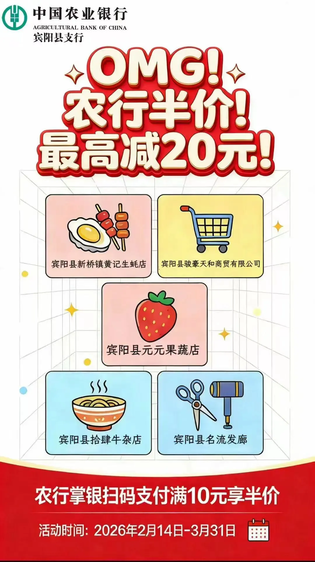 农行宾阳支行半价福利来袭✨
