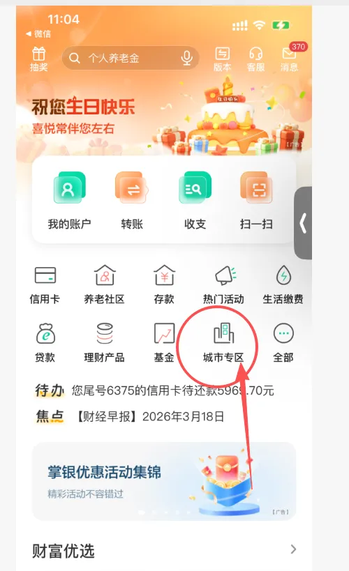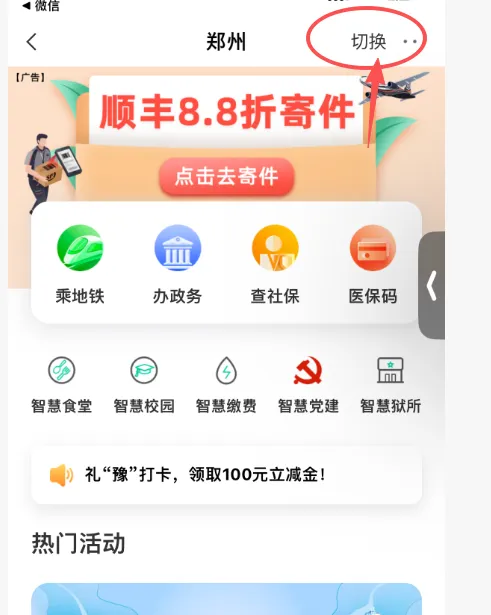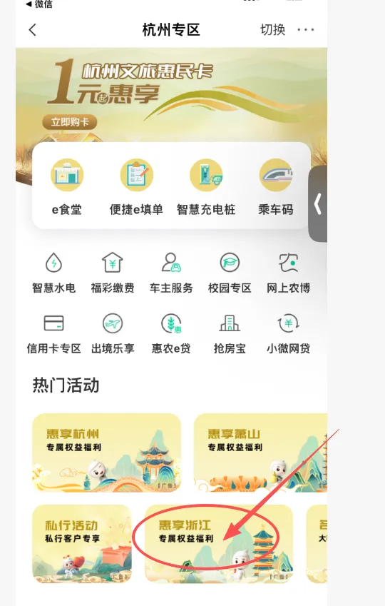 第一步:先去农行app,城市专区,切换到杭州,然后点击惠享浙江进去