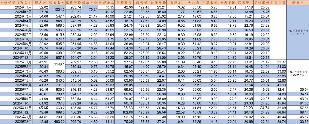 1.圣农发展:2026年2月份销售情况简报。2026年2月实现销售收入13.17亿元,同比+15.10%,环比-34.87%。其中,家禽饲养加工板块鸡肉销售收入为7.13亿元,他同比-14.69%,环比-47.56%;深加工肉制品板块销售收入为8.44亿元,同比+68.06%,环比-23.74%。销量方面,2月份家禽饲养加工板块鸡肉销售数量为6.71万吨,同比-21.54%,环比-49.84%;深加工肉制品板块产品销售数量为4.22万吨,同比+65.34%,环比-23.32%。2月份受春节假期所在月份的影响,实际生产天数较去年同期减少,导致销售数量等经营数据呈现较大波动,综合来看,公司1-2月累计销量同比增长超10%。