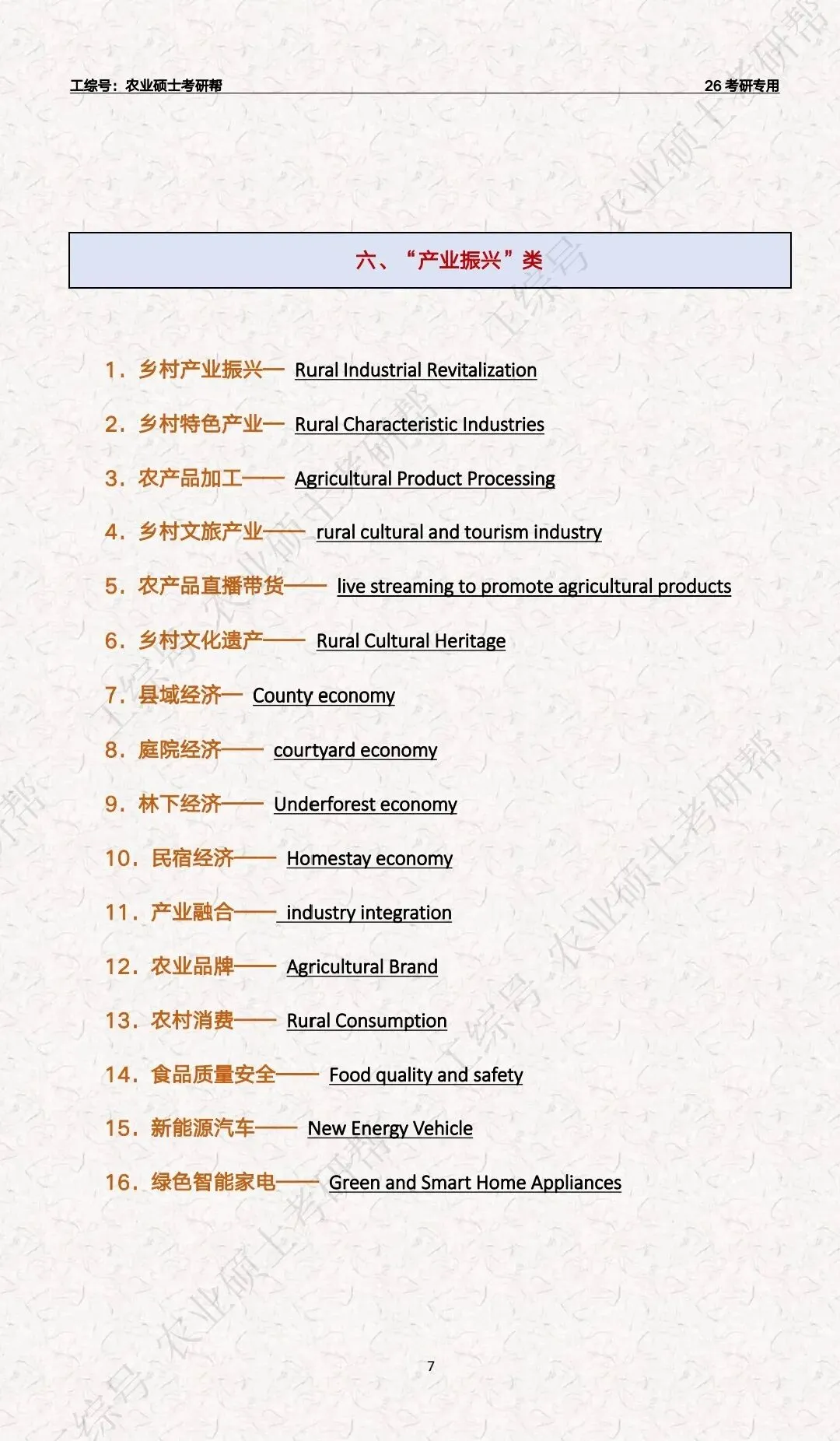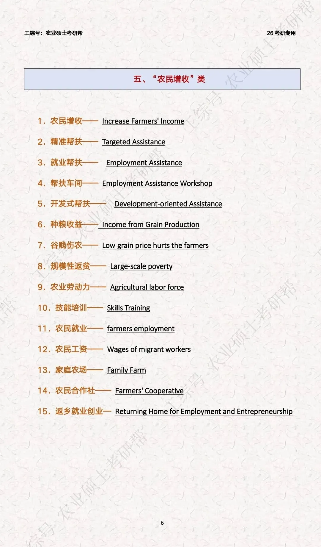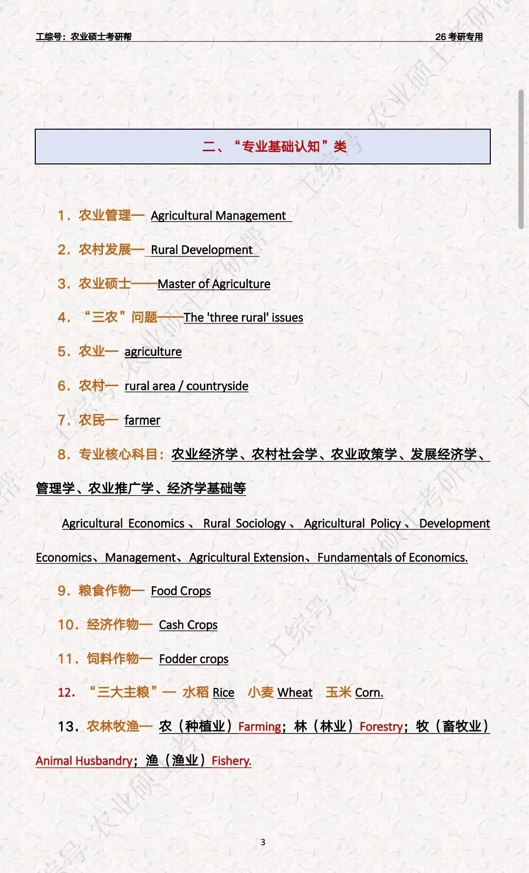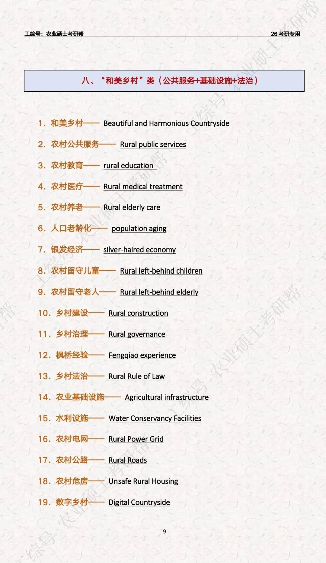 复试英语“三农”关键词汇总