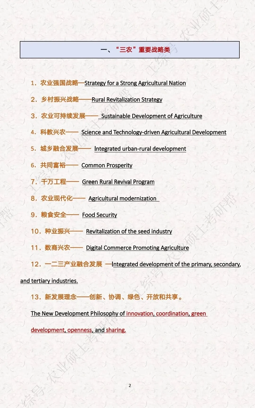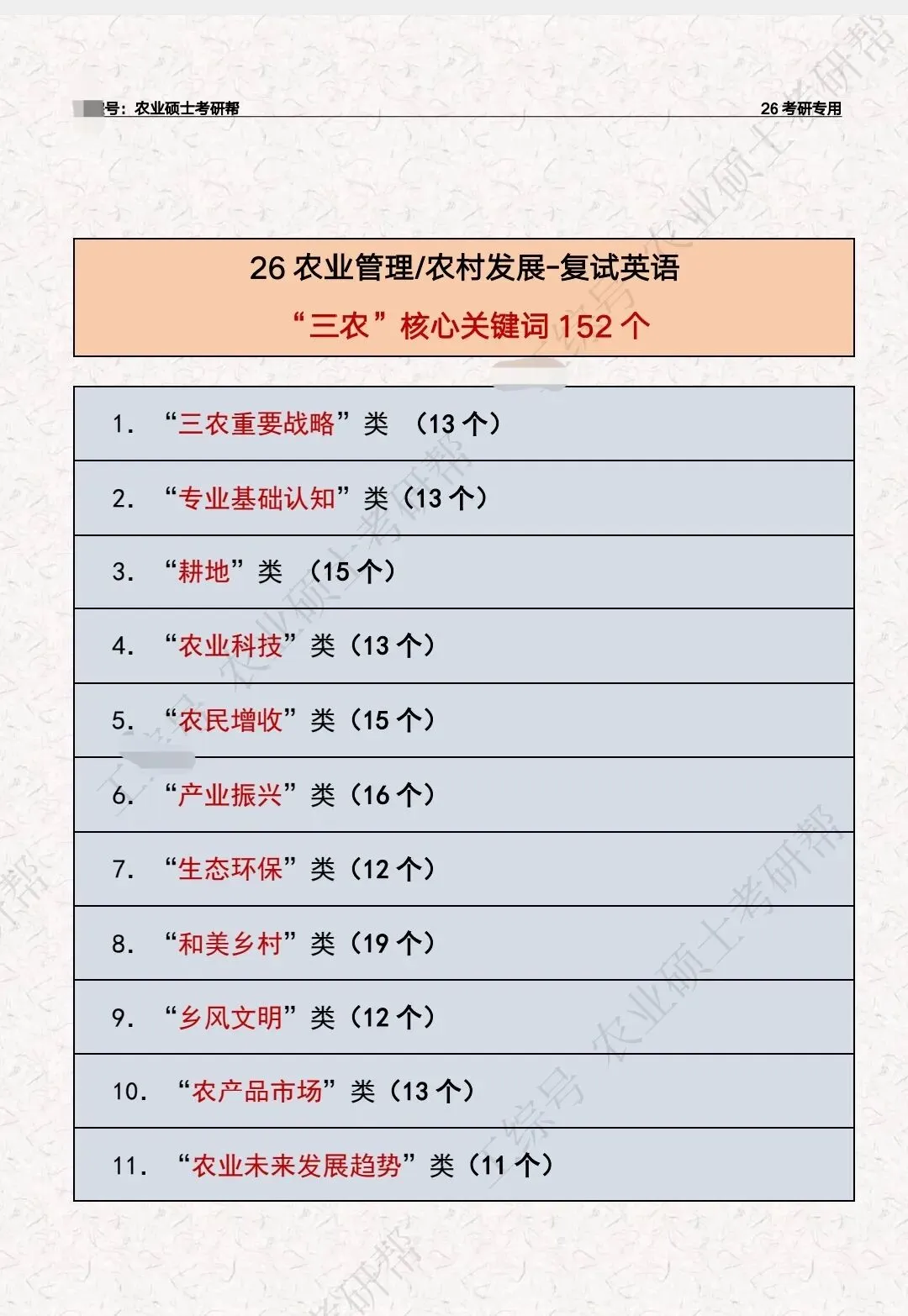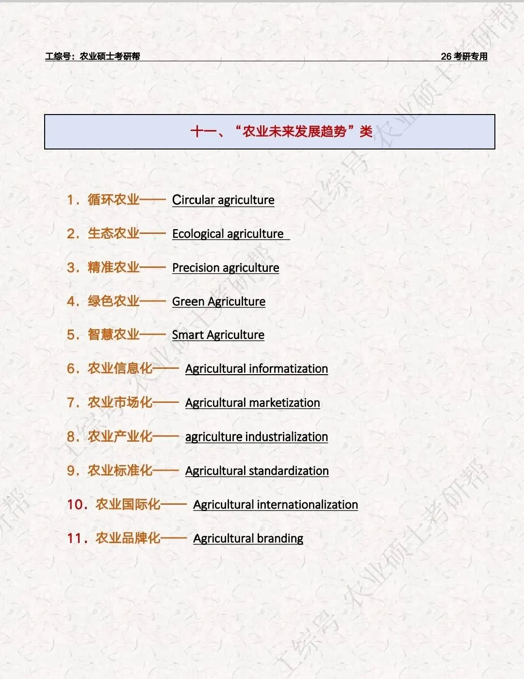 复试英语“三农”关键词汇总
