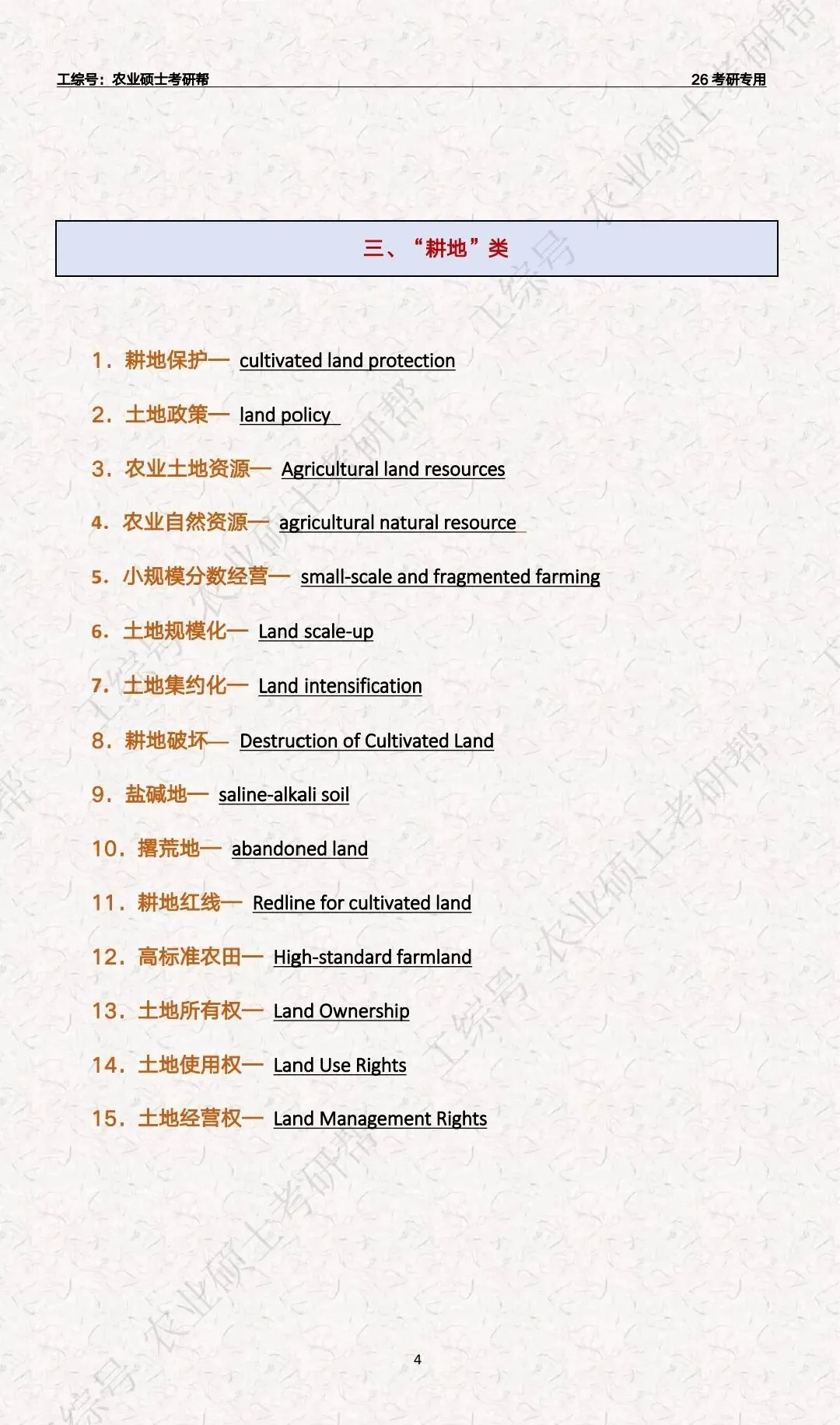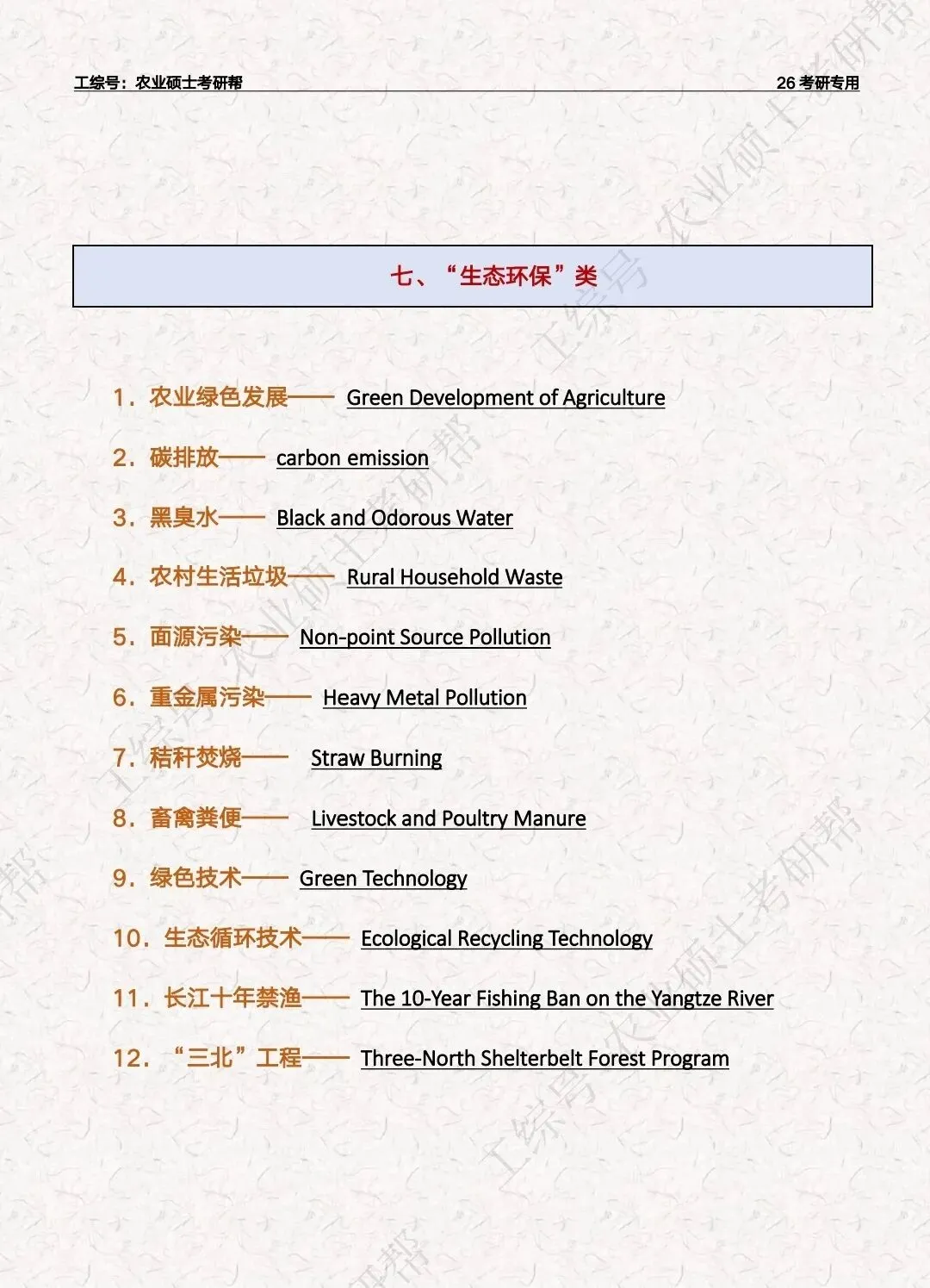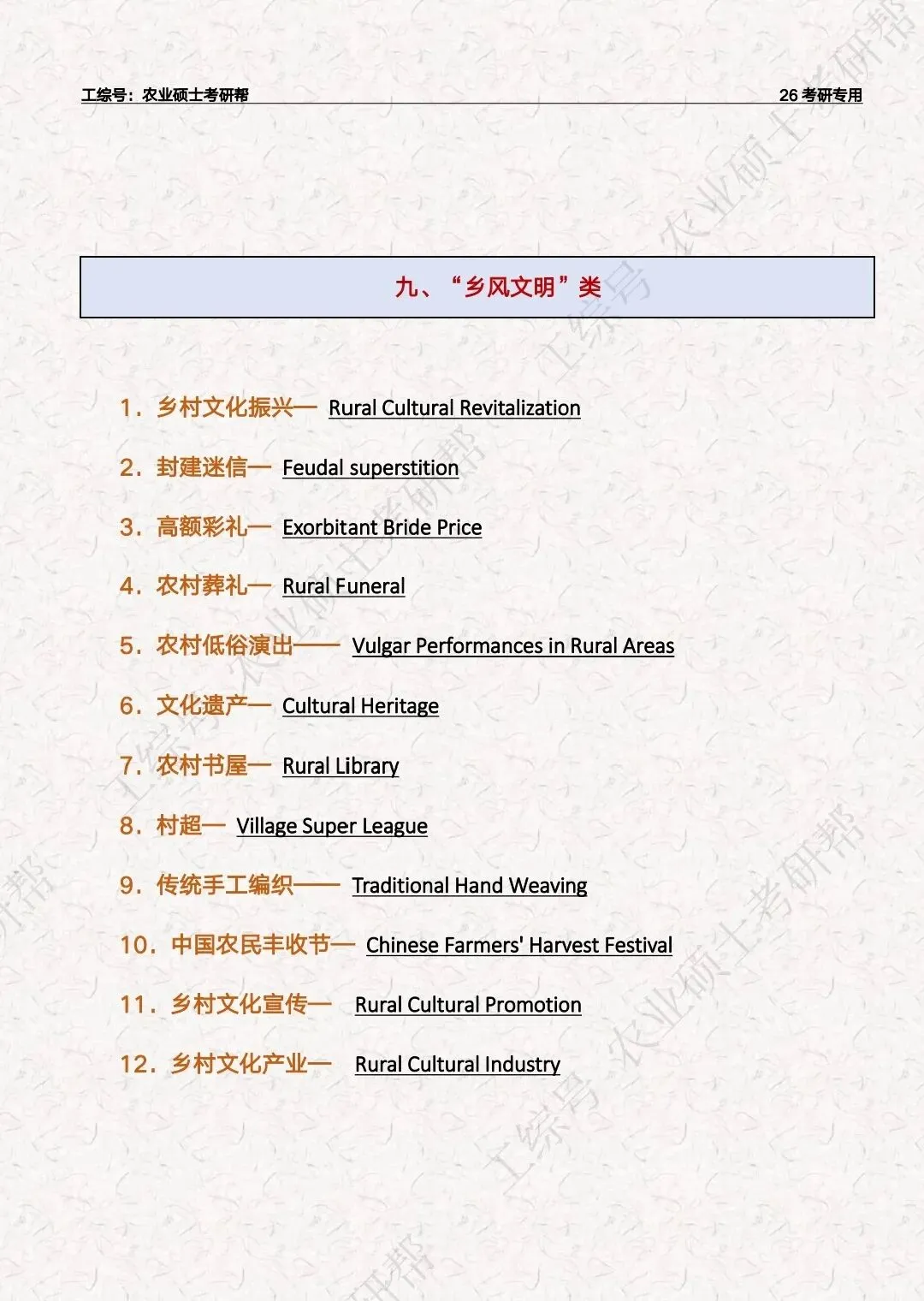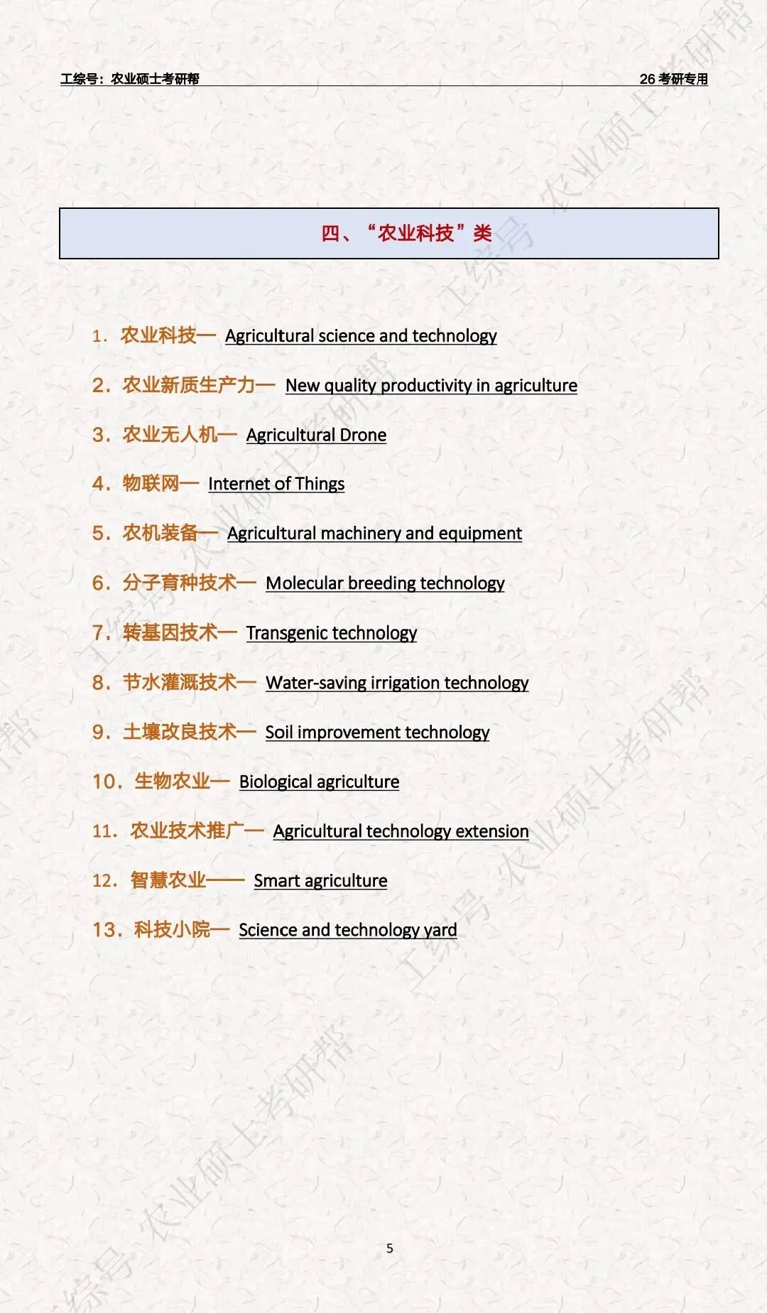 复试英语“三农”关键词汇总