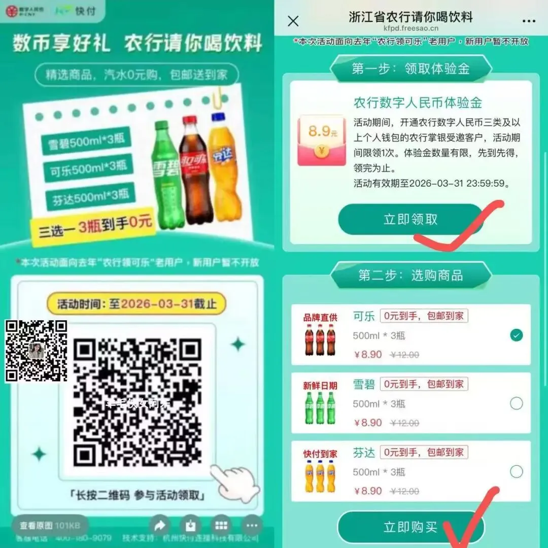 本次活动面向去年“农行领可乐”老用户,新用户暂不开放